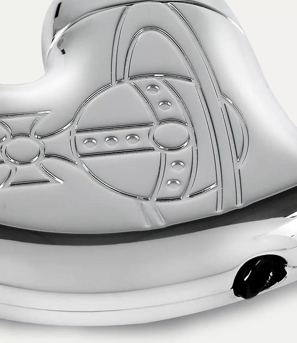Onze Heart-aansteker heeft een gepolijste zilverkleurige afwerking en een asymmetrisch hartvormig silhouet, dat verwijst naar Vivienne’s liefde voor de mensheid en de planeet. Het stuk is subtiel voorzien van het kenmerkende ‘Line Orb’-motief van het huis, dat symbool staat voor traditie, omringd door de hemelse ringen van Saturnus, die symbool staan voor de toekomst.