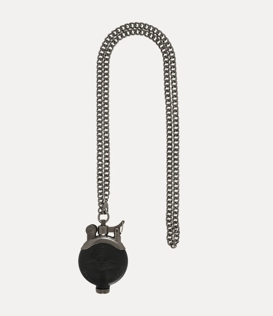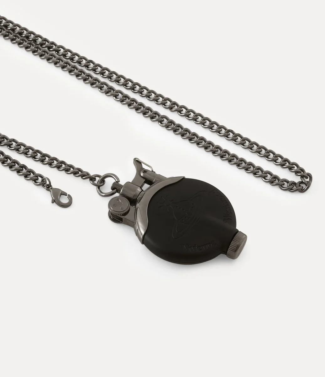 Dit seizoen wordt de lichtere ketting opnieuw geïntroduceerd met een mix van zilverkleurige en matte afwerkingen. Het cirkelvormige ontwerp, geïnspireerd op antieke Victoriaanse horloges, hangt aan een schakelketting en is voorzien van een gegraveerd orb-silhouet aan de voorkant. De orb symboliseert traditie, omringd door de hemelse ringen van Saturnus, die de toekomst vertegenwoordigen.