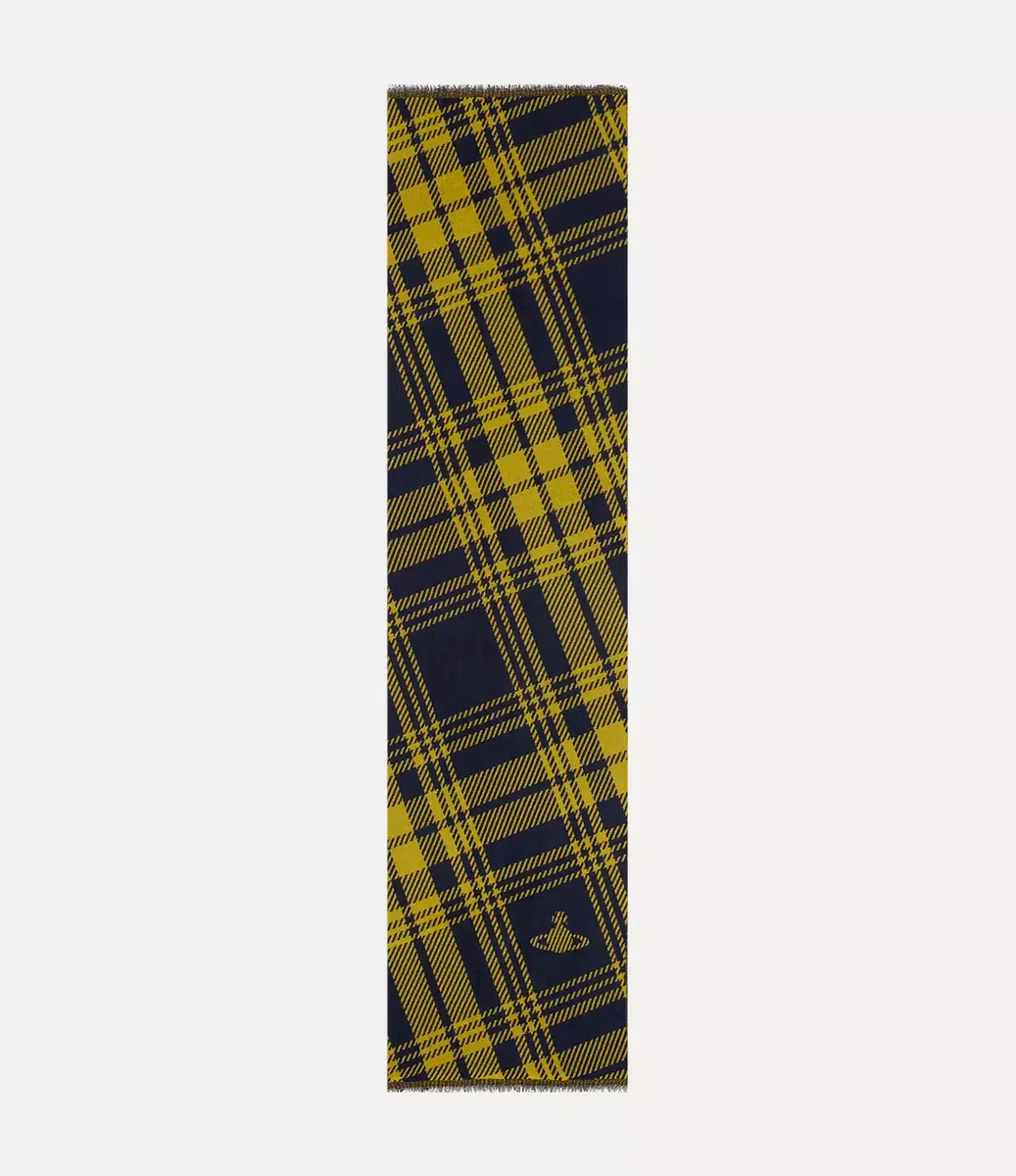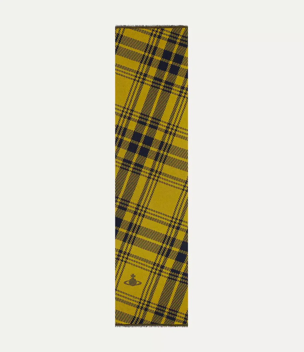 Onze sjaal is gemaakt van zachte wol en geweven met een tartanmotief, geïnspireerd op traditionele Schotse Highland-regalia. Het stuk heeft een klassieke rechthoekige vorm en is afgewerkt met licht gerafelde randen en het ‘Silhouette Orb’-embleem van het huis.