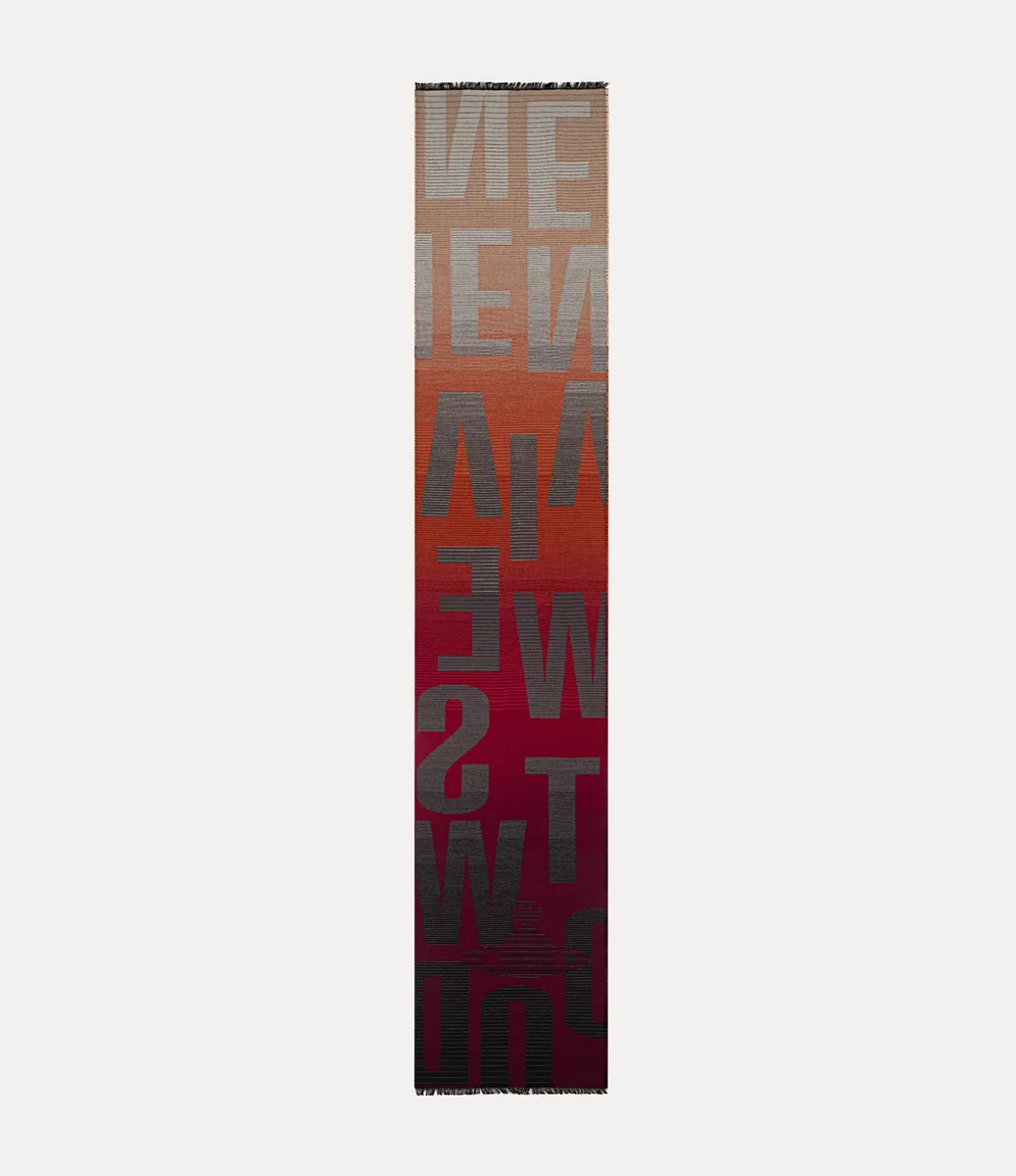 De Vivienne Westwood sjaal is voorzien van het opvallende ‘Logomania’-jacquardmotief van dit seizoen, geweven in zachte kleurovergangen. Het sjaaltje is afgewerkt met lichte franjes langs de randen en weerspiegelt Viviennes visie om het verleden naar de toekomst te brengen.