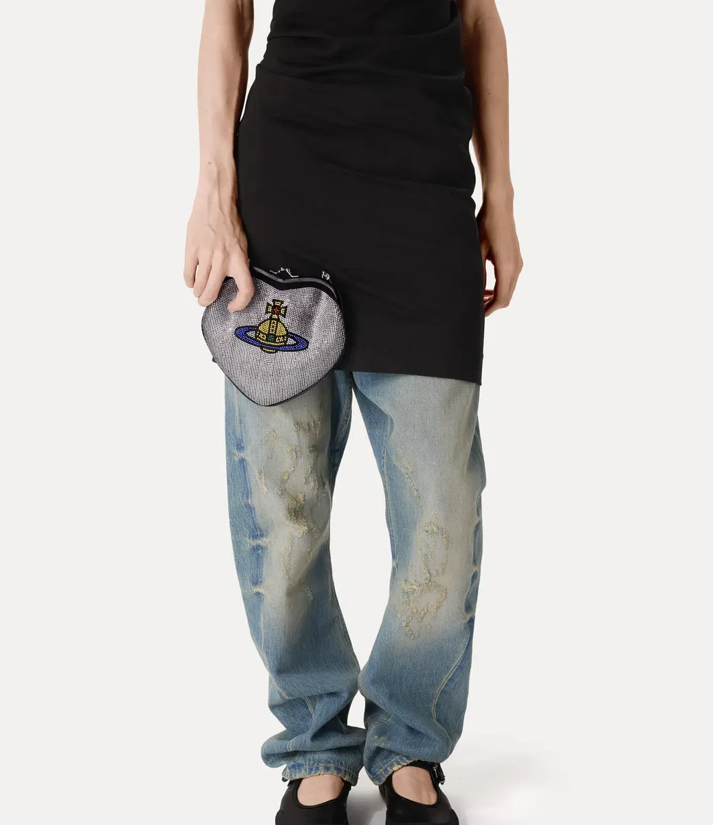De Vivienne Westwood Belle Heart Frame-portemonnee heeft een hartvormig silhouet dat is versierd met rijen glinsterende diamant-edelstenen.