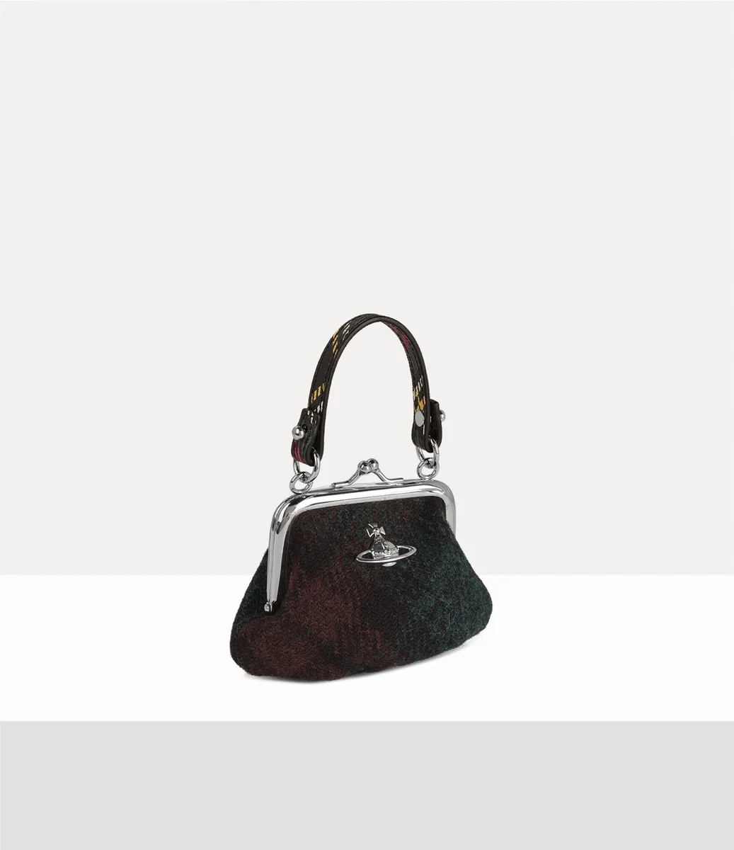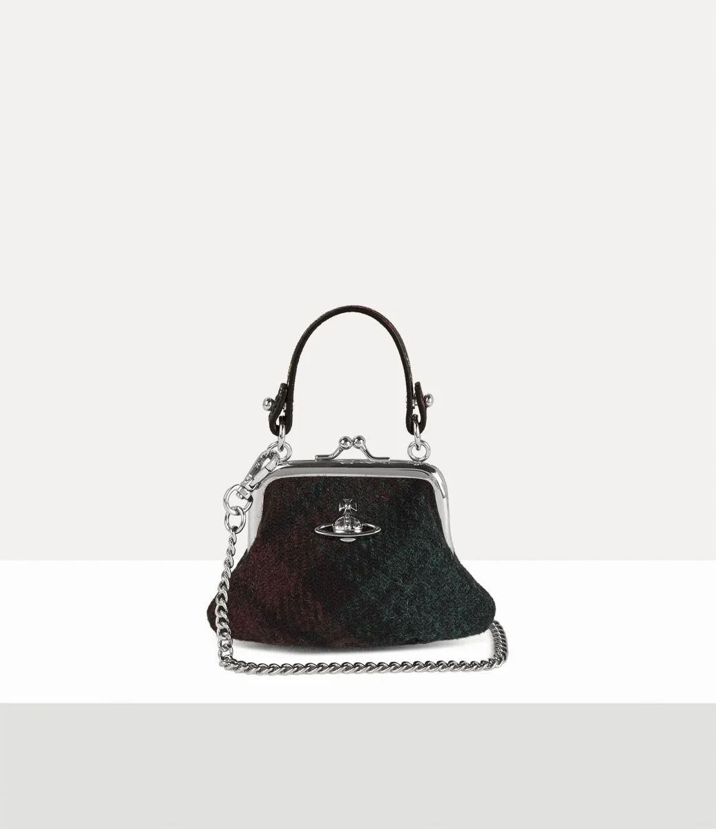 De Mini Granny Frame Purse is een kleinere versie van de iconische Granny Frame Purse van het huis. De tas is gemaakt van Harris Tweed, met de hand geweven door ambachtslieden op de Schotse Buiten-Hebriden, en heeft een zacht gestructureerd silhouet en ons kenmerkende veelkleurige orb-motief, uitgevoerd in de getufte afwerking van dit seizoen.
