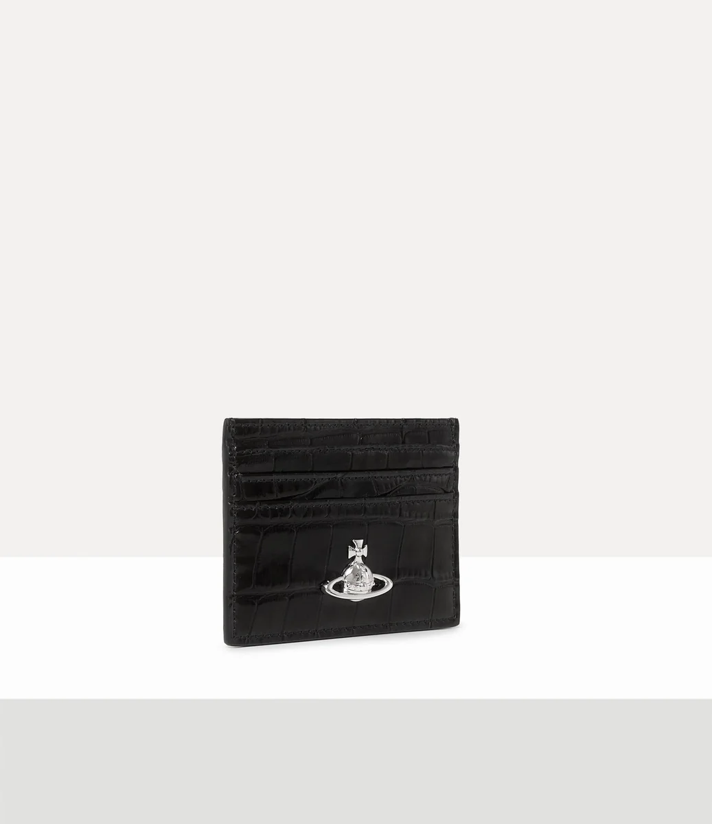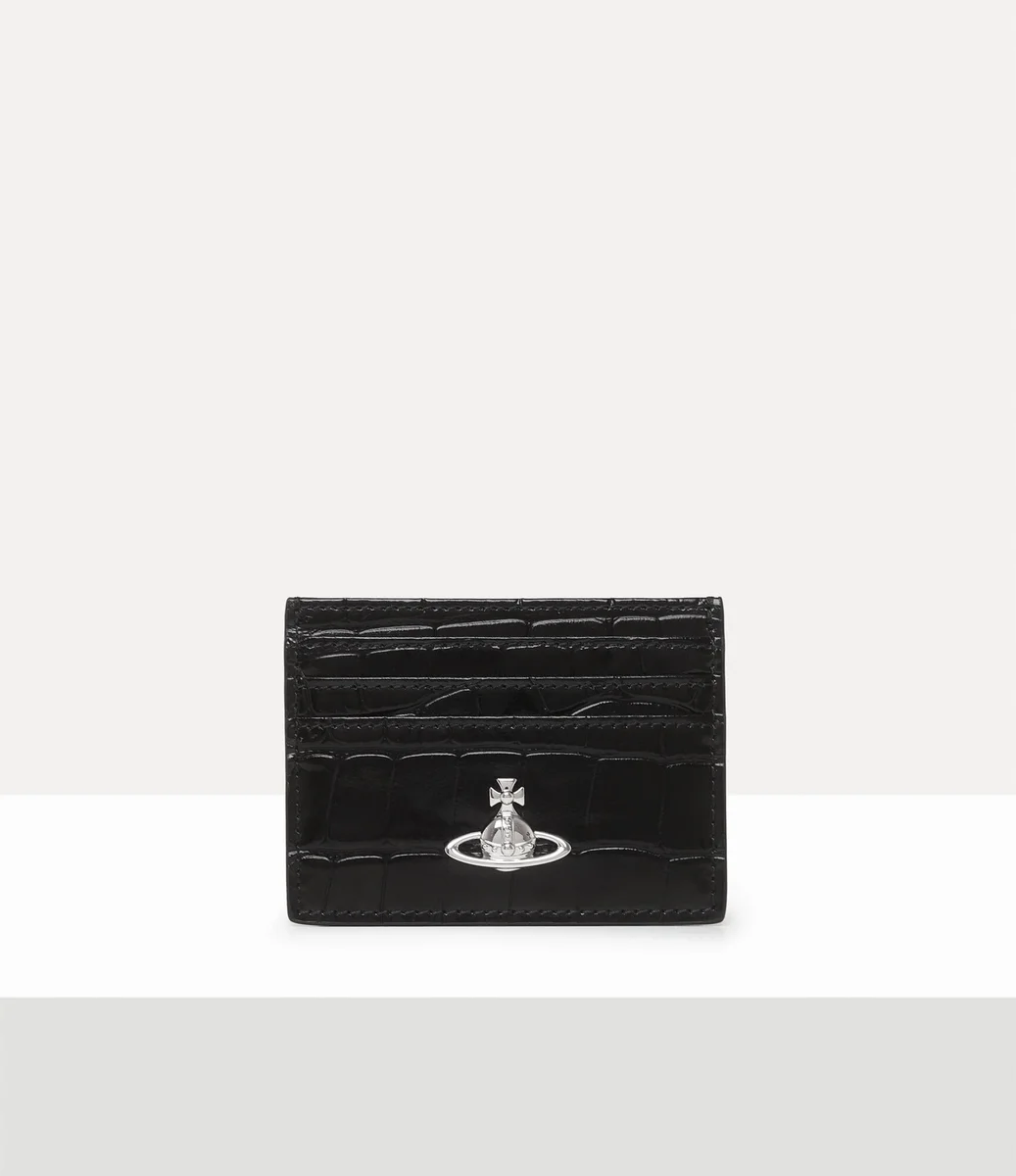 De platte kaarthouder van Vivienne Westwood is gemaakt van glanzend leer met een krokodillenprint en is versierd met een zilverkleurig bolmotief op de voorkant.