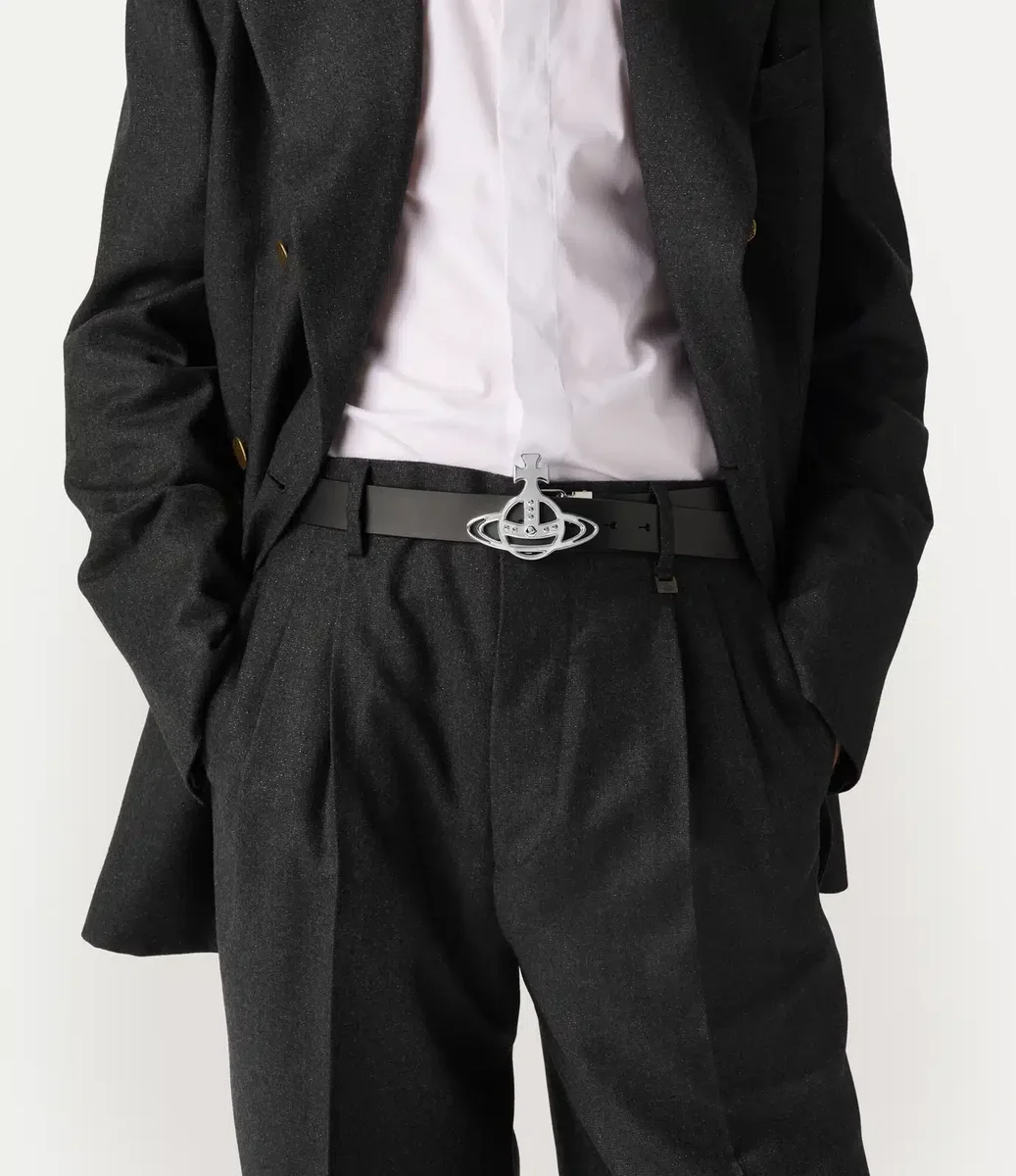 Onze Line Orb Buckle-riem heeft een gepolijste zilverkleurige afwerking en is versierd met ons ‘Line Orb’-motief op de gespsluiting, dat staat voor traditie, omringd door de hemelse ringen van Saturnus, die symbool staan voor de toekomst. Het ontwerp heeft een gladde leren riem, afgewerkt met perforaties.