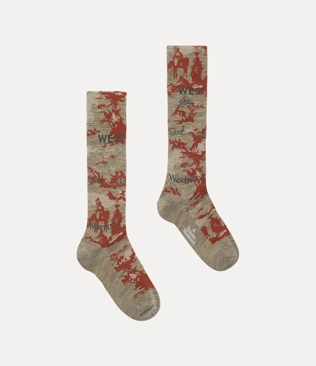 Onze enkelsokken zijn gebreid met een Toile de Jouy-jacquard, met een romantisch landelijk motief. Het paar is gemaakt van een extra fijne merinowolmix en afgewerkt met het orb-motief van het huis, geborduurd met veelkleurig garen.