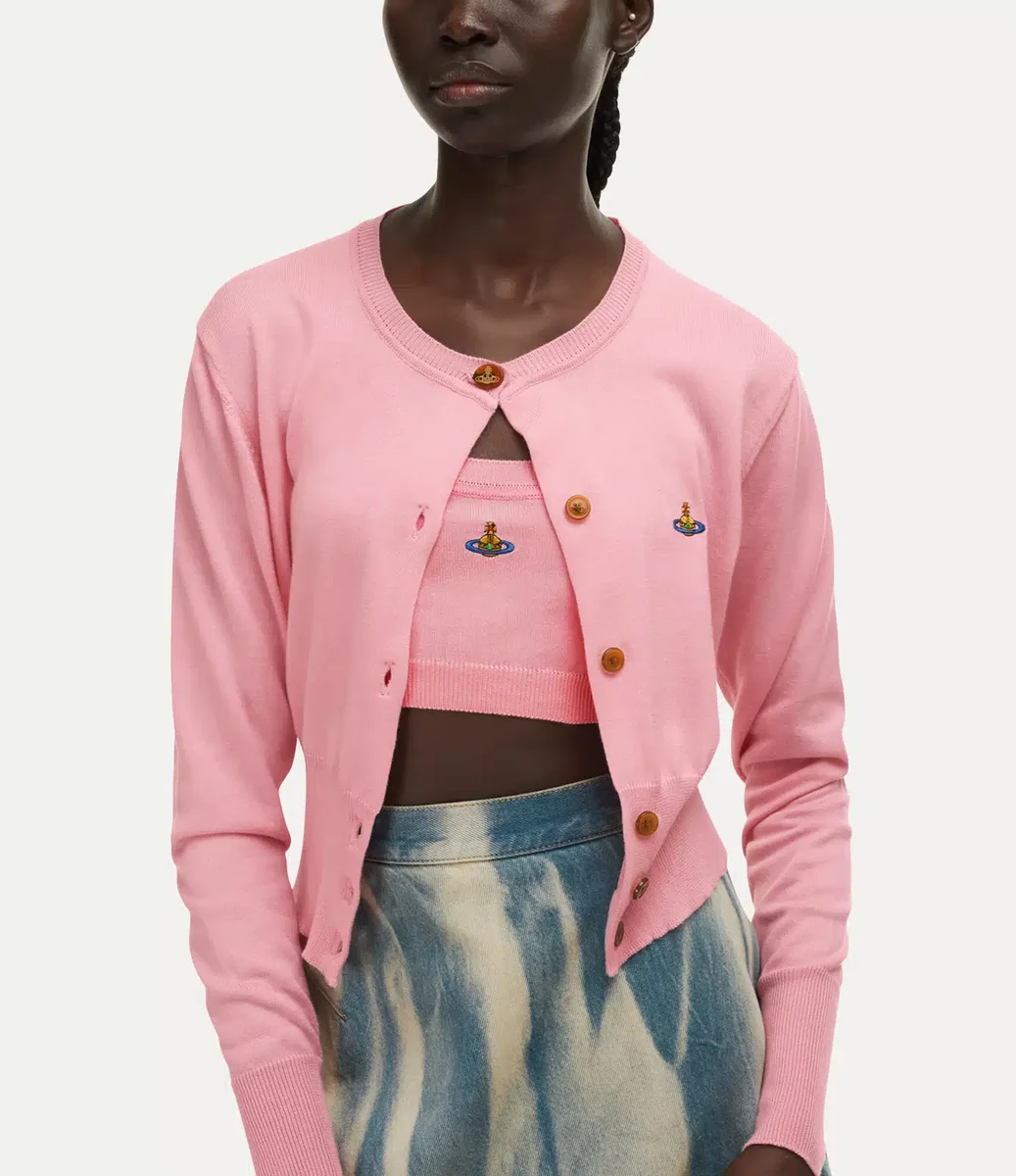 Ons Bea Cropped vest is dit seizoen opnieuw ontworpen en wordt aangeboden in een zachte katoen-kasjmiermix, versierd met een veelkleurig orb-borduursel aan de linkerkant van de borst. Het kledingstuk heeft een grote ovale knoopsluiting bij de halslijn, afgewerkt met het klassieke ‘Line Orb’-motief.