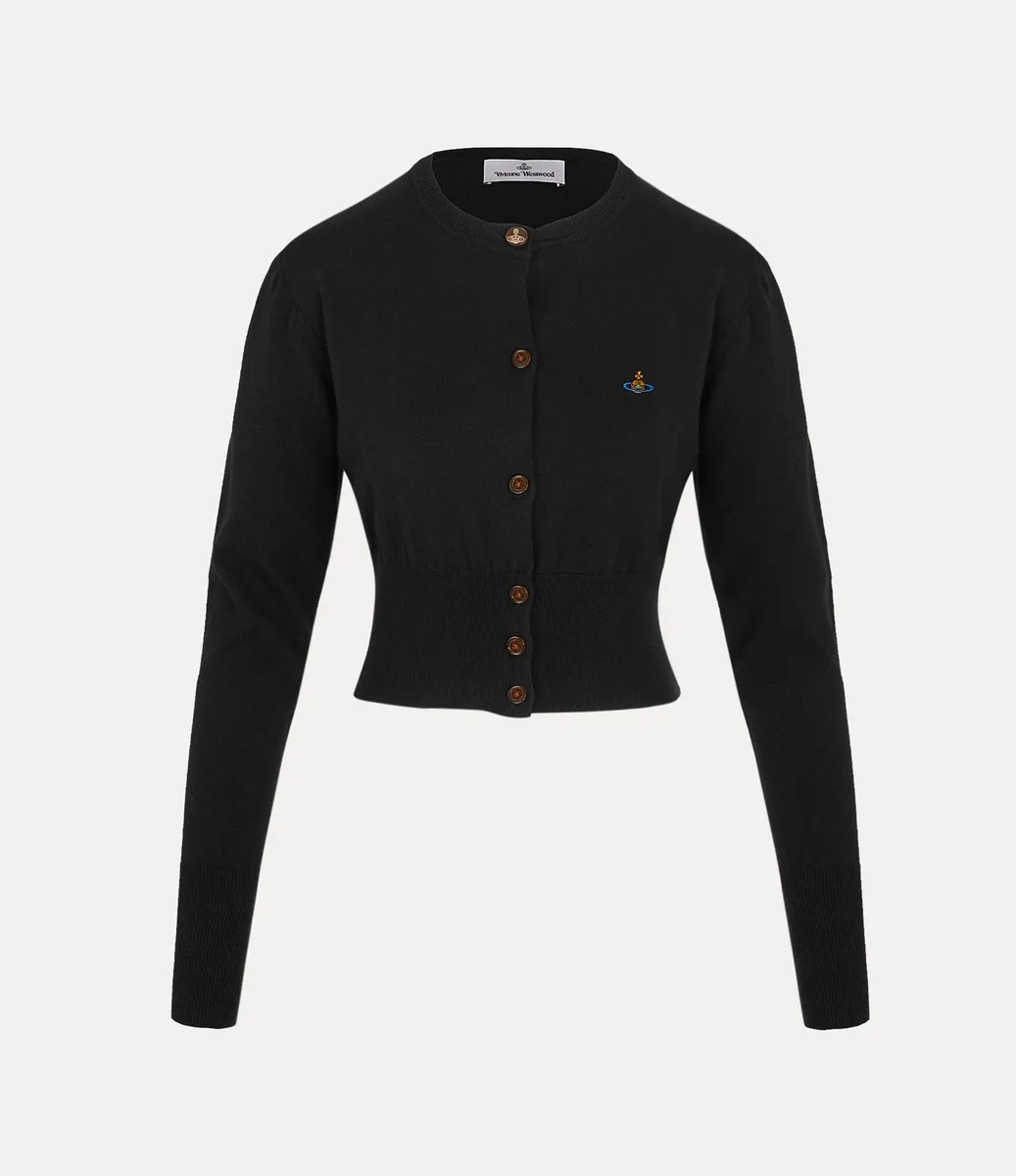 Vivienne Westwood Bea Cropped vest van een zachte katoen-kasjmiermix, versierd met een veelkleurig borduursel in de vorm van een bol aan de linkerkant van de borst.