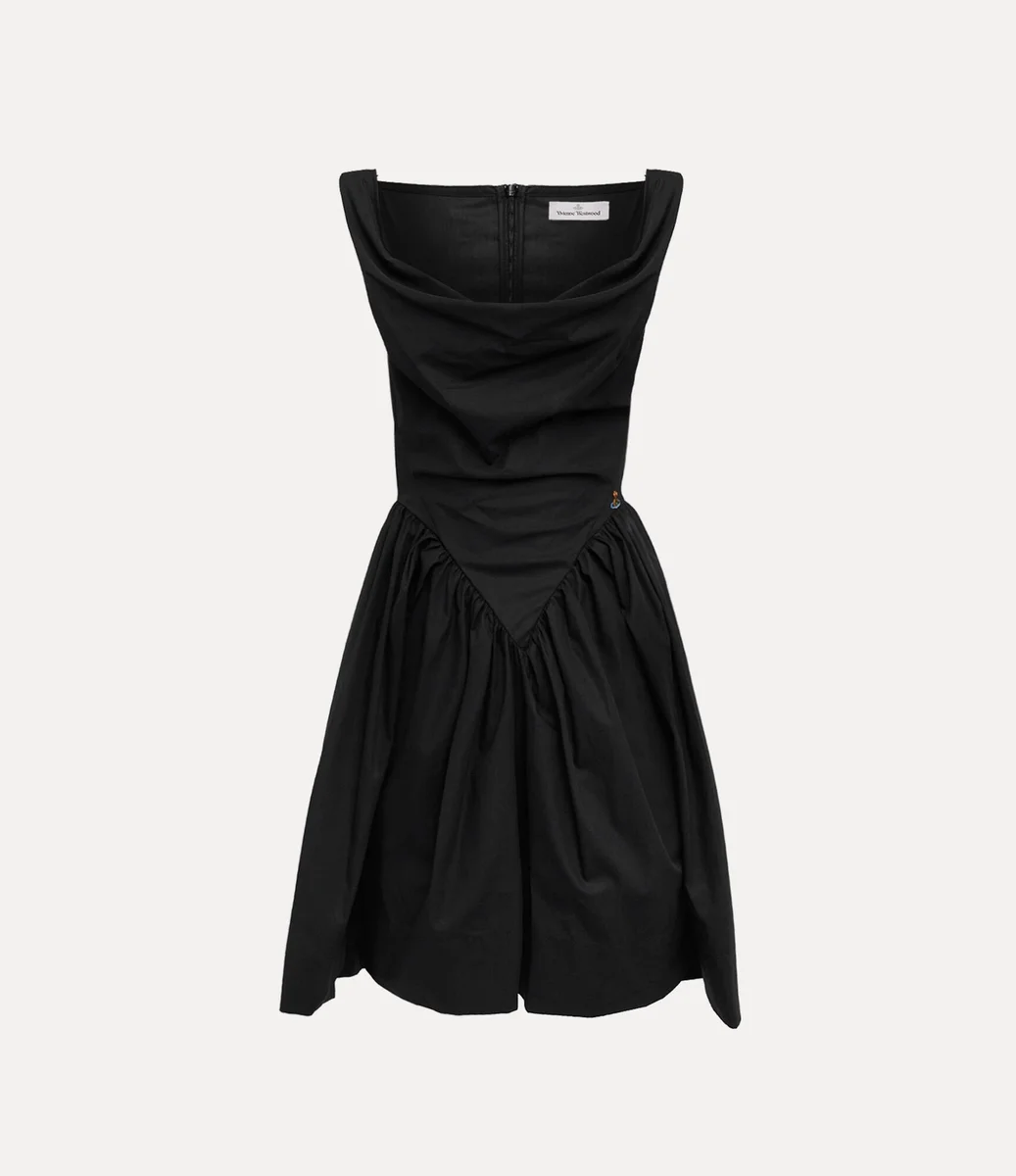 Het ontwerp van onze Mini Sunday-jurk is geïnspireerd op de stijlen die werden gedragen door vrouwen uit de high society van de 18e-eeuwse saloncultuur. Het model is gebaseerd op de originele zondagse jurk van het huis en is dit seizoen opnieuw ontworpen met een mini-lengte, een op een korset geïnspireerd silhouet en een veelkleurig bolmotief op de heup.