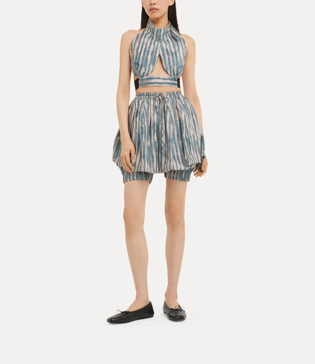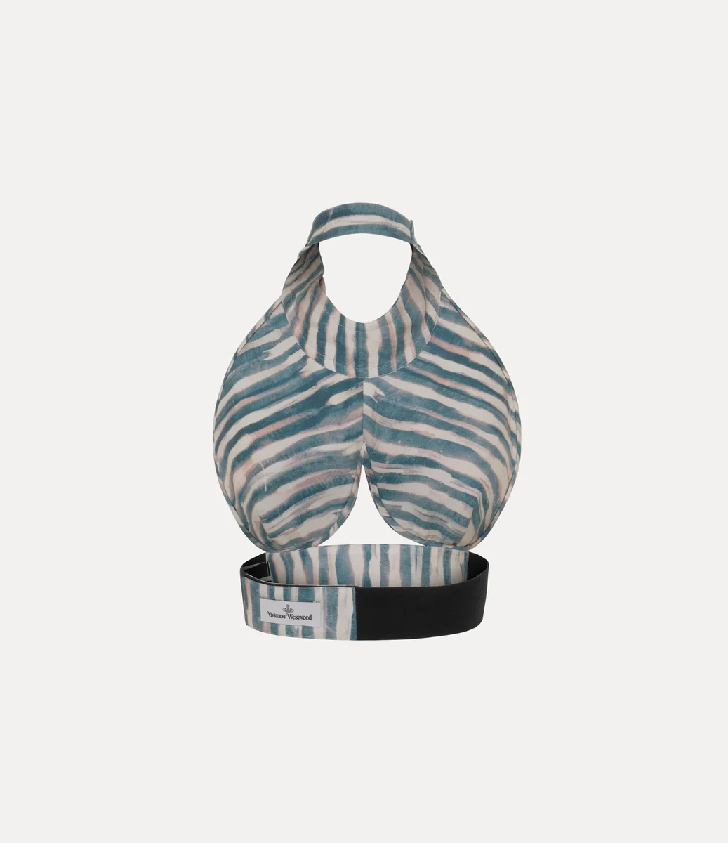 De mouwloze Boob top is gemaakt van zacht katoen en heeft een sculpturale pasvorm die zachtjes de contouren van de borst volgt. De hoge halslijn en het cropped ontwerp creëren een flatterend silhouet, terwijl de handgeschilderde penseelstreken en overgeverfde afwerking het kledingstuk een unieke, gestructureerde look geven.