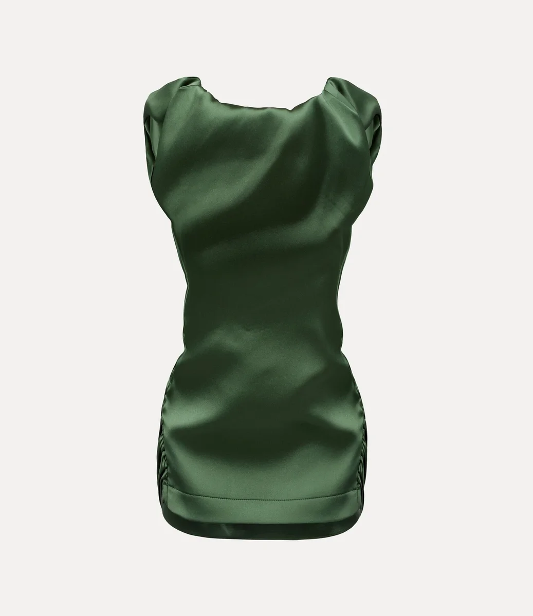 Onze kenmerkende Ginnie top is dit seizoen opnieuw ontworpen met een luxe satijnen afwerking, met een delicate drapering die de halslijn omlijst en zachte plooien die het bovenlichaam accentueren. Het silhouet valt soepel over de heupen en is afgewerkt met het klassieke Vivienne Westwood-label bij de halslijn.