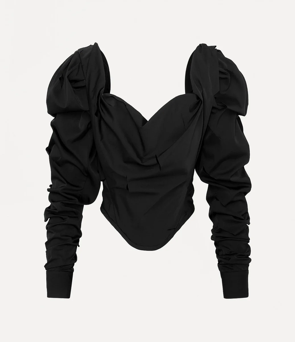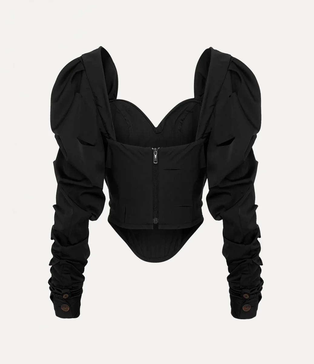 Onze LS Sunday Corset Top is gemaakt van rijk gekleurd taf en heeft een delicaat lasergesneden ontwerp, geïnspireerd op kunstwerken uit de Andreas Kronthaler herfst-winter 2024-2025 show. Het kledingstuk heeft een sculpturaal korsetachtig lijfje en is afgewerkt met een ritssluiting met een gegraveerde bol aan de achterkant.