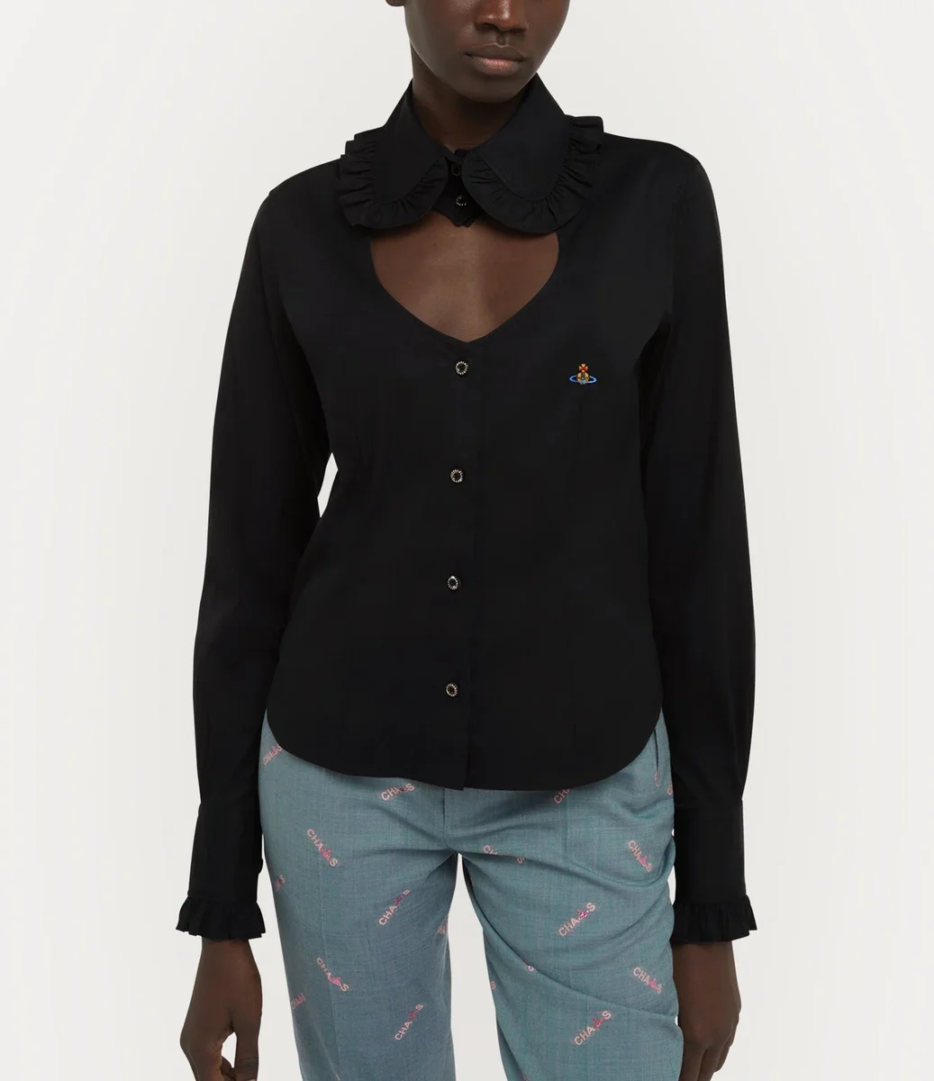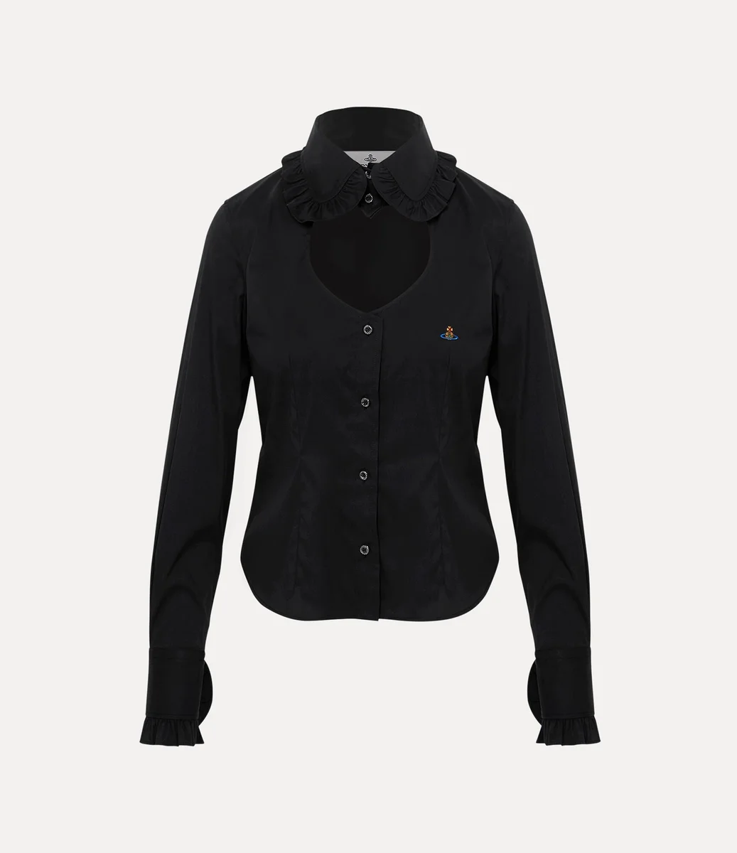 Het Toulouse Frill shirt laat onze archiefknipsel met uitgesneden hart bij de halslijn herleven – synoniem voor Vivienne’s liefde voor zowel de mensheid als de planeet. Het kledingstuk is afgewerkt met ons kenmerkende orb-borduursel op de borst, compleet met een subtiel afgeronde kraag, omlijst met gerimpelde ruches.