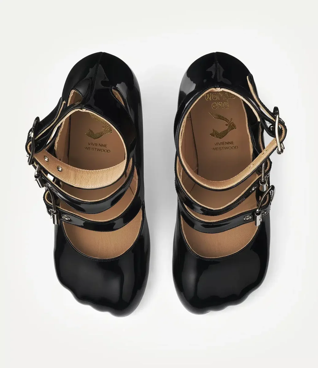 Onze Animal Toe Three-Strap schoenen hebben een glanzende lakafwerking en een Romeins geïnspireerd bovenwerk met drie bandjes, geïnspireerd op de iconische Romeinse sandalen met drie bandjes uit het erfgoed van het huis. De kenmerkende dierlijke neus, voor het eerst geïntroduceerd in de lente-zomercollectie ‘Summertime’ van 2000, bootst de vorm van een dierenpoot na en laat een unieke afdruk achter. De schoen is afgewerkt met klassieke gespsluitingen.