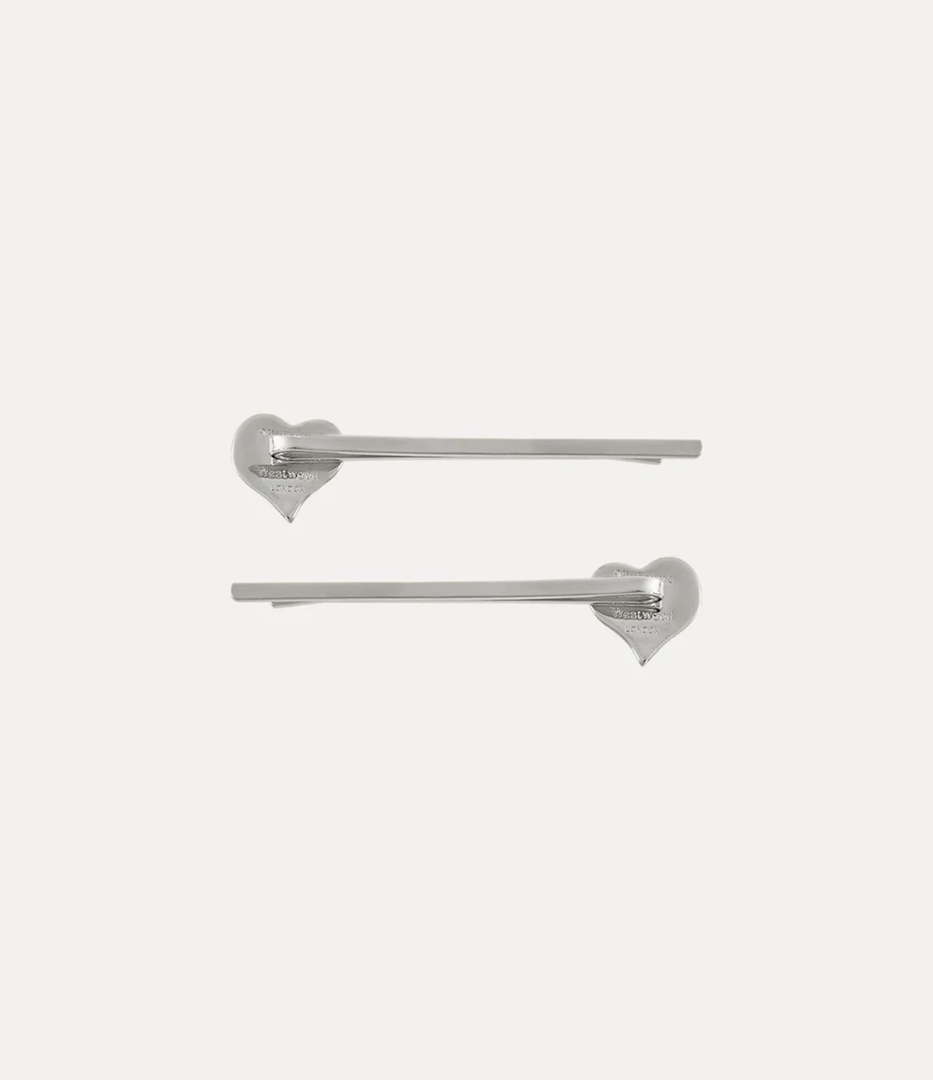 Onze Petra Bobby-spelden hebben een zilverkleurig silhouet, versierd met een asymmetrisch hartvormig motief, dat verwijst naar Vivienne’s liefde voor de mensheid en de planeet. Het sieraad heeft een bol in het midden, die symbool staat voor traditie, omringd door de hemelse ringen van Saturnus, die symbool staan voor de toekomst.
