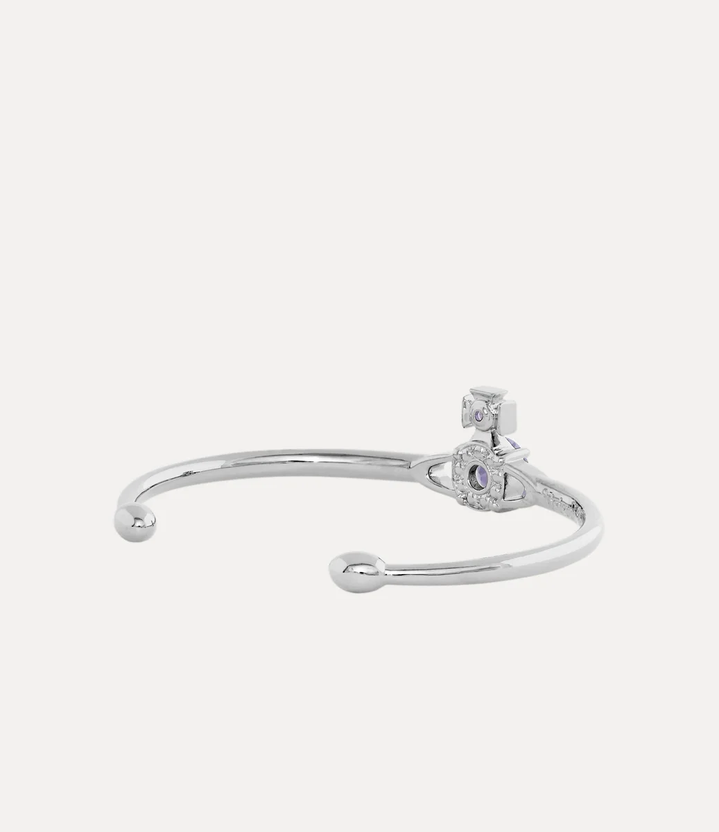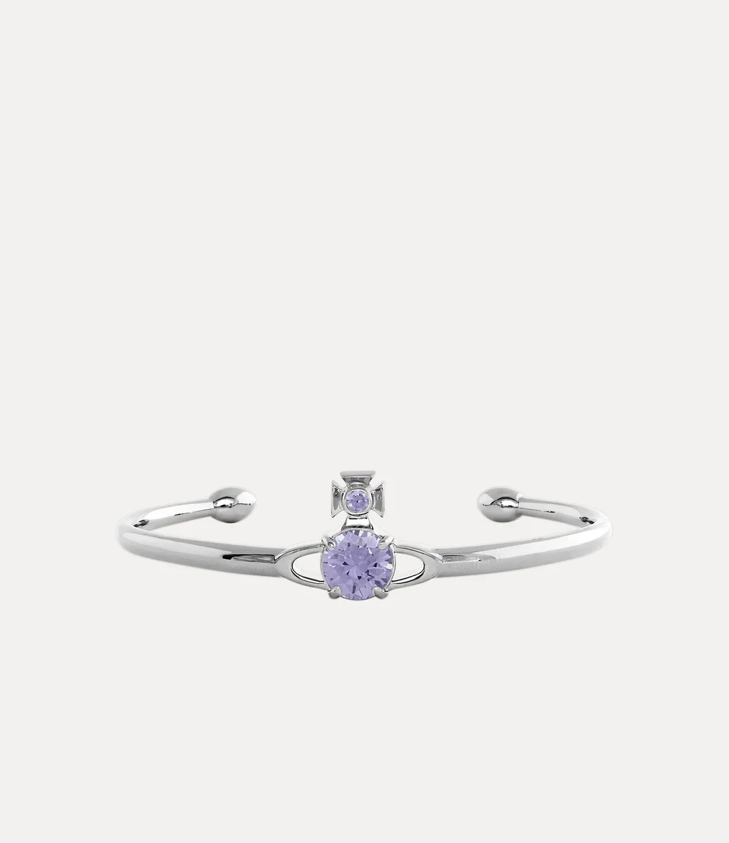 Onze Reina Large armband is een kenmerkende stijl van het huis, met een opvallende tweedimensionale lila bol in het midden van het ontwerp, geïnspireerd op het bolvormige motief van ons huis. Het sieraad is bezet met glinsterende kristallen in dezelfde kleur en verwijst naar Vivienne’s visie om traditie mee te nemen naar de toekomst.