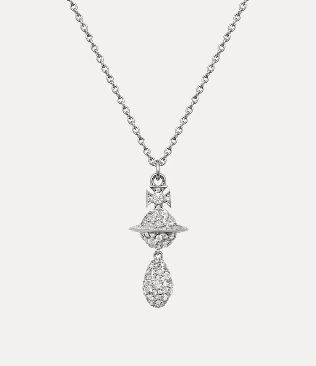Onze Circe Orb hanger ketting is geïnspireerd op het kenmerkende orb-motief van het huis, dat symbool staat voor traditie, omringd door de hemelse ringen van Saturnus die de toekomst vertegenwoordigen. De driedimensionale hanger is rijkelijk bezet met glinsterende pavé zirkonia kristallen en afgewerkt met een delicate druppelvormige parel en een veilige karabijnsluiting.