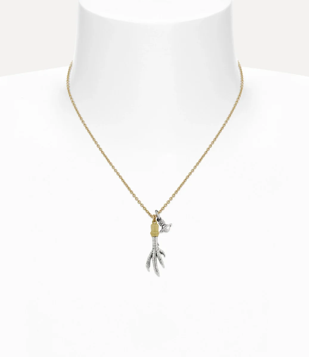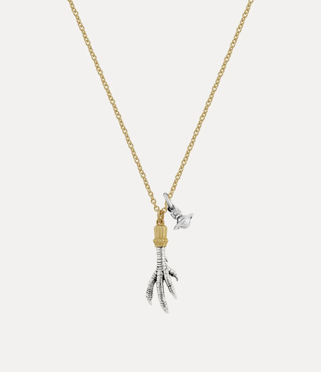 De Joselita hanger ketting is voorzien van het opvallende kippenpootmotief van dit seizoen, een symbool van geluk. De hanger is verrijkt met een zwarte patina om de texturen te benadrukken en heeft een gemengde metalen afwerking met gepolijste plating en een hangende bol, die het ethos van het huis symboliseert om het verleden mee te nemen naar de toekomst.
