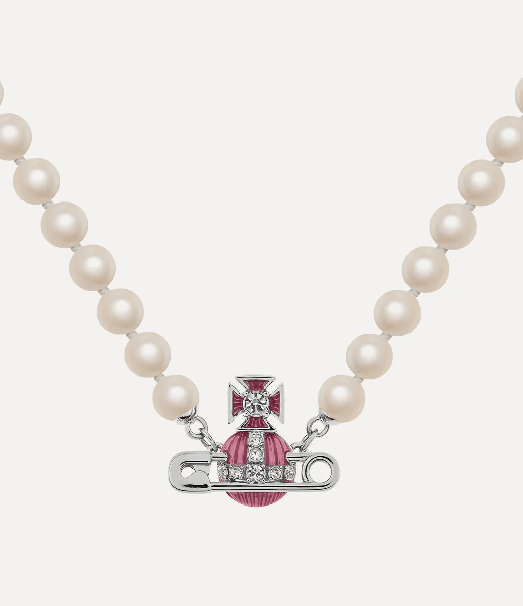 Parels zijn essentieel voor de iconografie van het huis en roepen een gevoel van luxe en rebellie op. De Kitty Pearl ketting is voorzien van handgeknoopte glazen parels, geïnspireerd op onze ‘Portrait’-collectie uit 1990. Het sieraad is afgewerkt met een veiligheidsspelddetail – een symbool van non-conformisme, dat doet denken aan Vivienne’s kenmerkende punkbenadering.