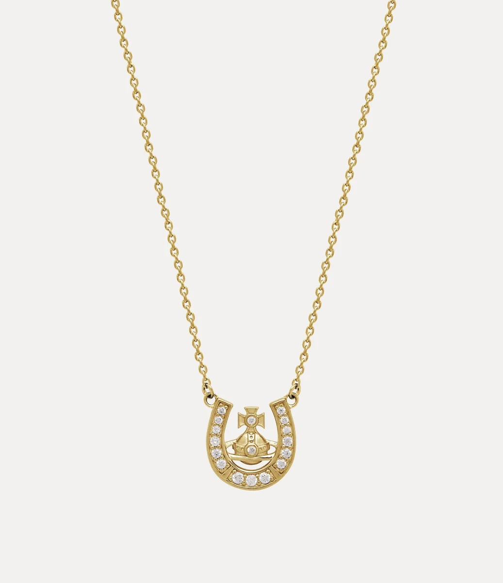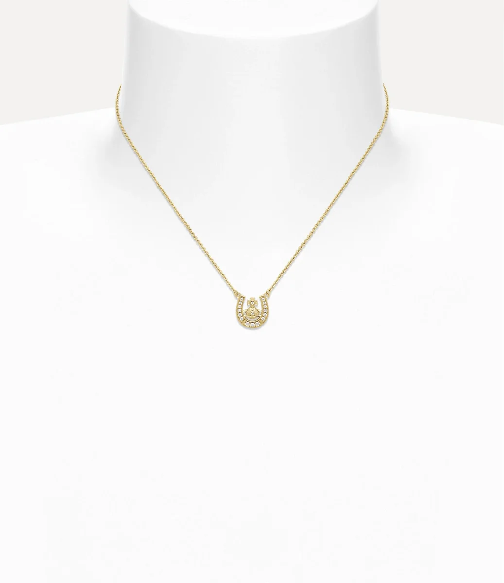 Onze Mare hanger ketting is gemaakt van gerecycled zilver en afgewerkt met een gepolijste goudkleurige laag. Het ontwerp is voorzien van het klassieke orb- en hoefijzermotief van het huis, een eerbetoon aan de kenmerkende iconografie van het huis, versierd met tonale kristallen details.
