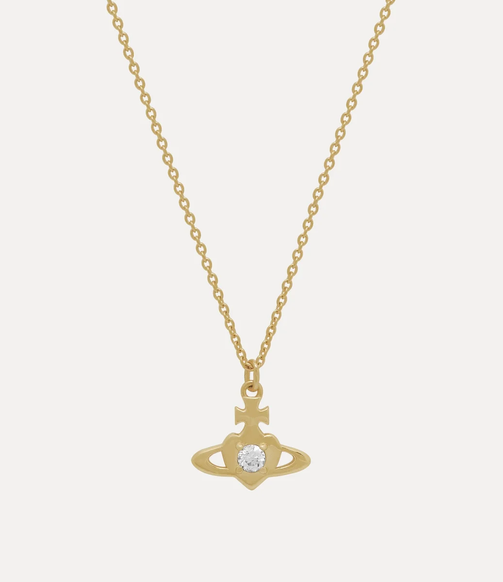 Onze Noella Pendant-ketting heeft een goudkleurige afwerking en is versierd met een hartvormig motief, dat verwijst naar Vivienne’s liefde voor de mensheid en de planeet. Het sieraad is gemaakt van gerecycled zilver en heeft een wit kristal in het midden van het ontwerp.