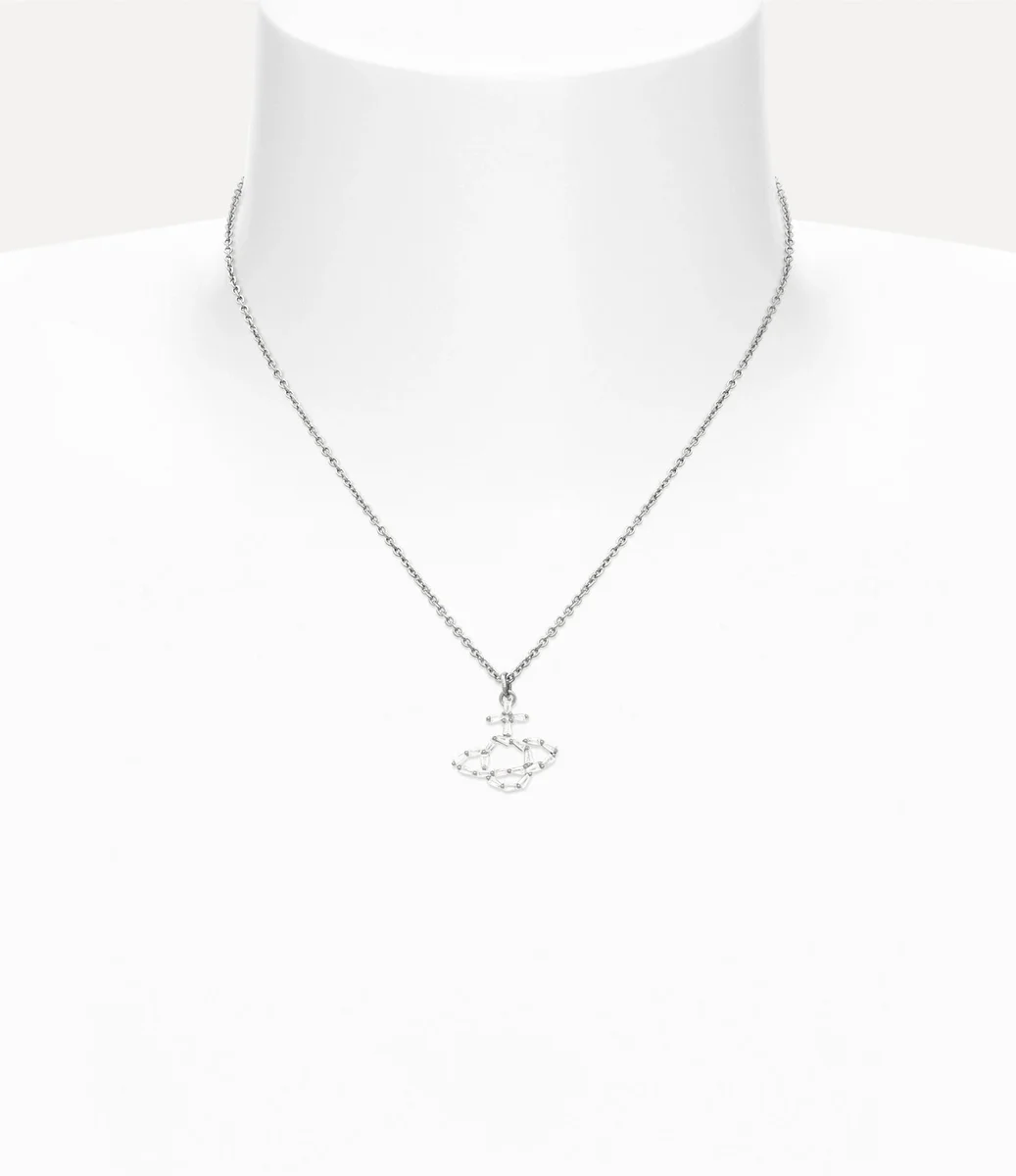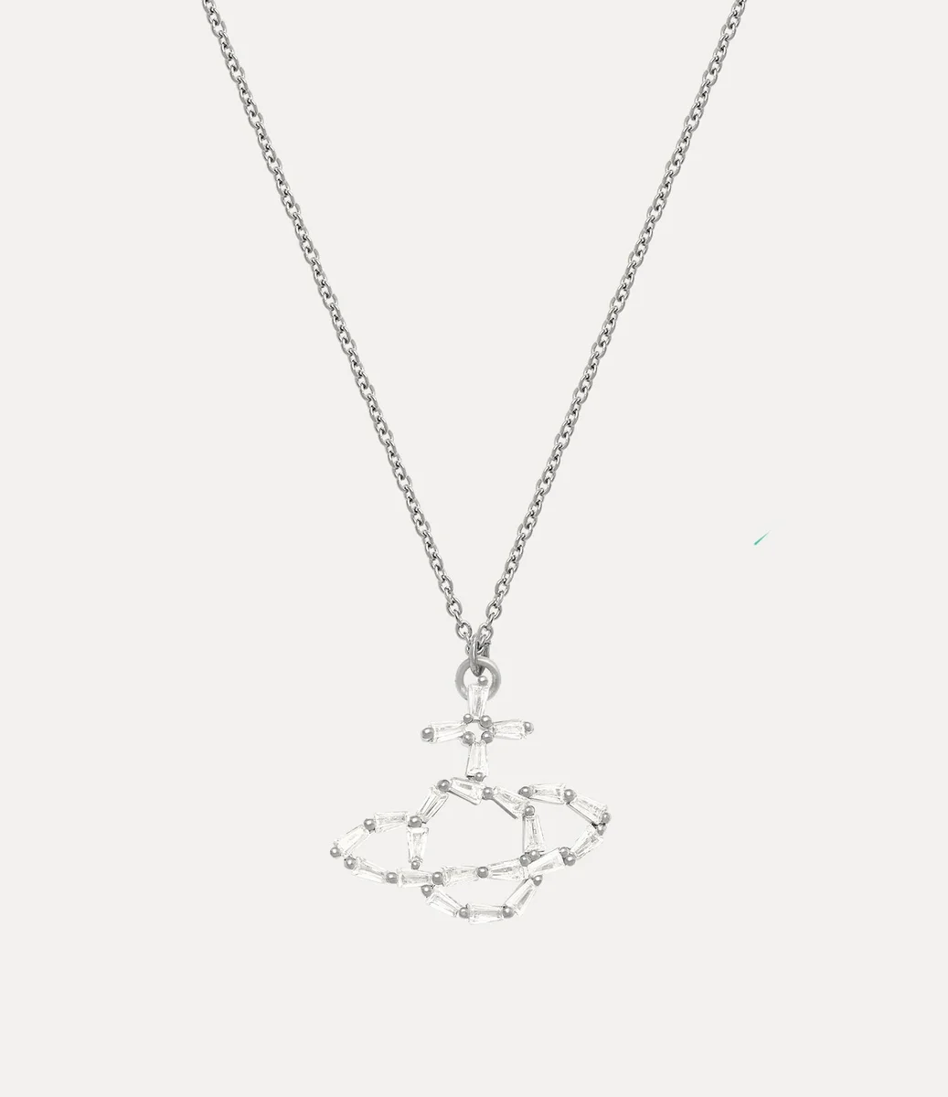 Dit seizoen is ons kenmerkende bolmotief opnieuw ontworpen met glinsterende, taps toelopende baguette-geslepen kristallen, die op een ingewikkelde manier over het ontwerp zijn aangebracht. De Odetta hanger ketting is afgewerkt met een zilverkleurige plating en heeft een delicate trace-ketting en een veilige karabijnsluiting.