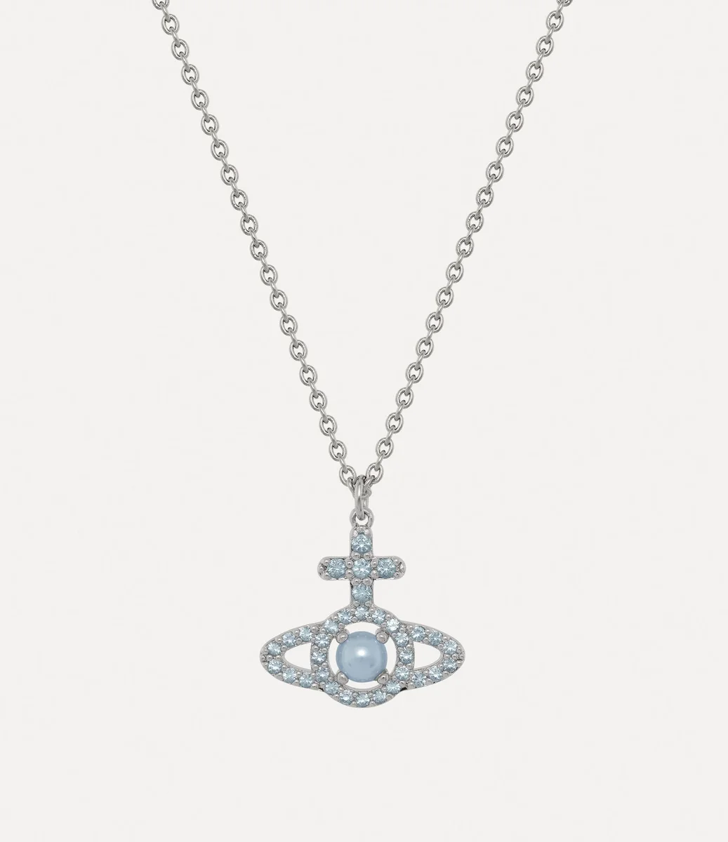 De Olympia Pearl Pendant-ketting is een kenmerkend sieraad van het huis, met onze opvallende bol in het midden, geïnspireerd op ons iconische bolmotief. Het ontwerp, geaccentueerd met sprankelende lichtblauwe kristallen en glazen parels, weerspiegelt het ethos van het verbinden van het verleden met de toekomst.