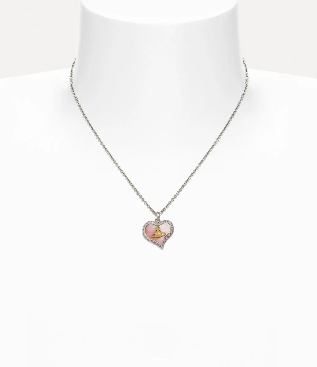 Onze Petra hanger ketting laat het kenmerkende asymmetrische hartmotief van het huis herleven, dat synoniem staat voor Vivienne’s liefde voor zowel de mensheid als de planeet. Het motief is omlijnd met roze gekleurde kristallen en afgewerkt met een goudkleurig bolmotief in het midden van het ontwerp.