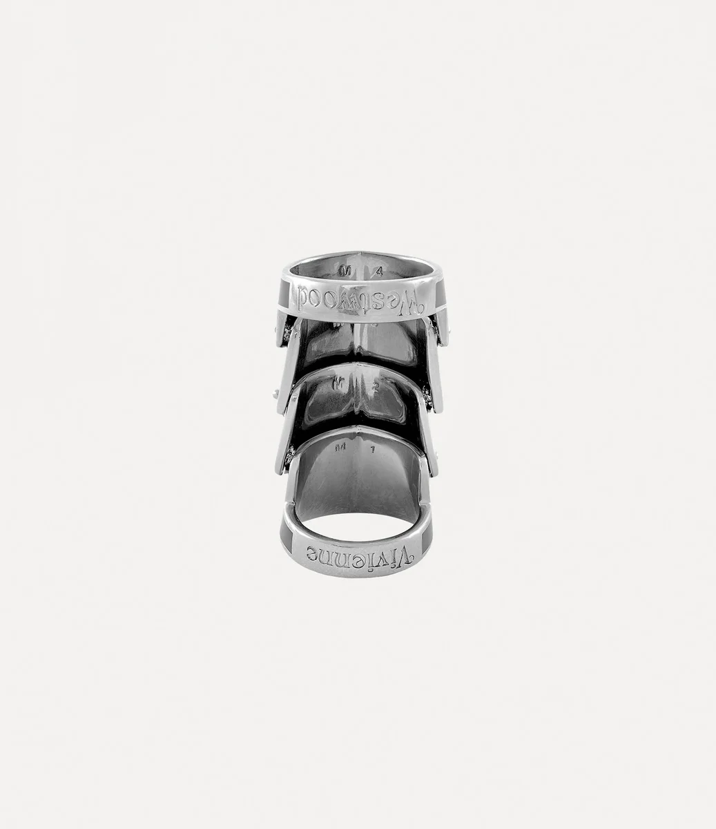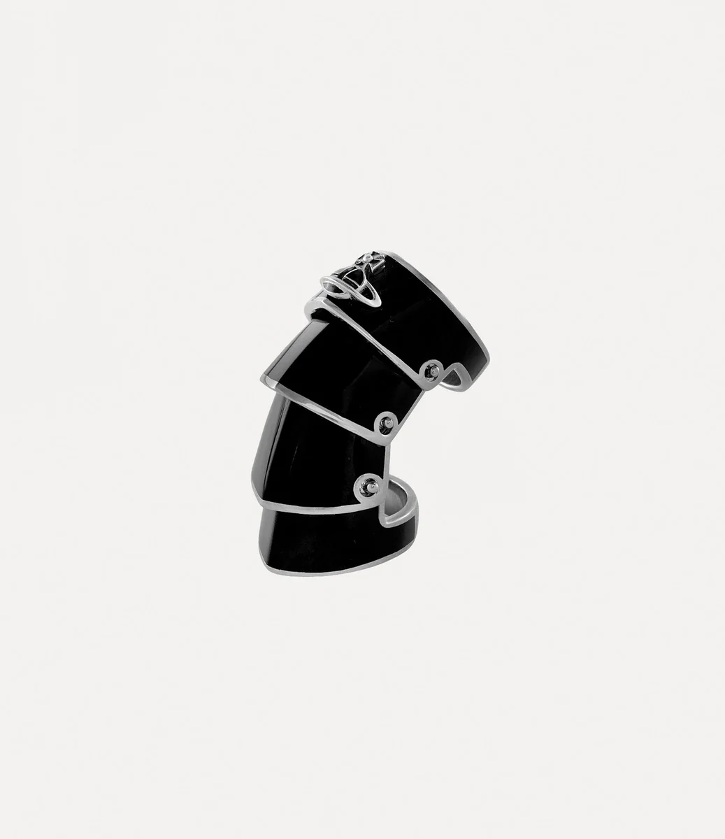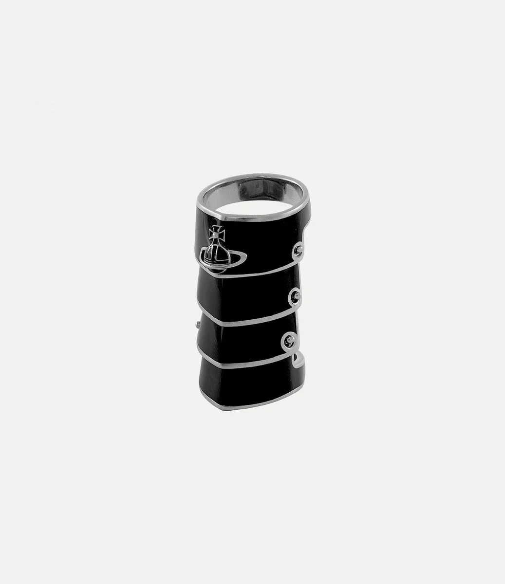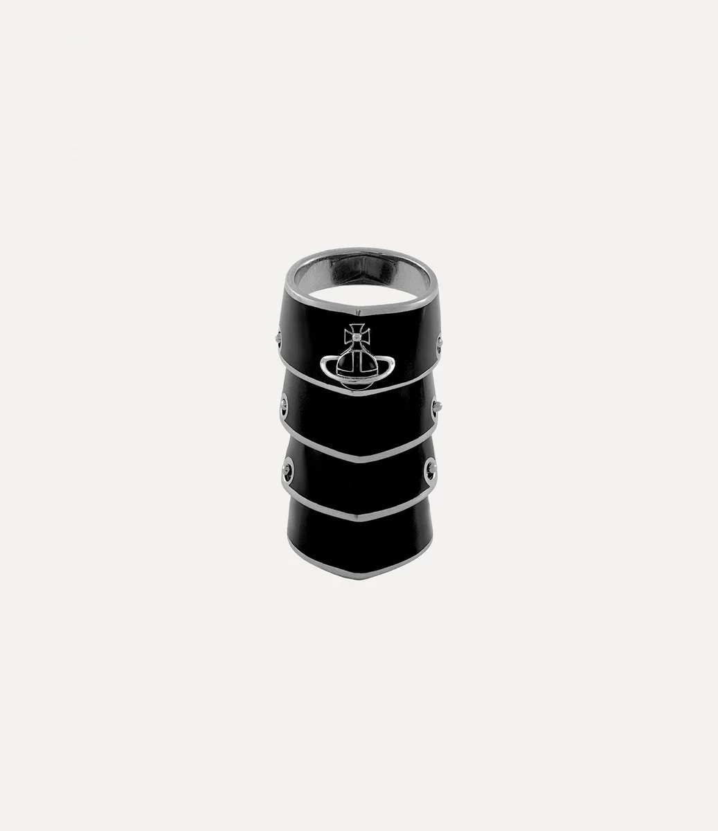 De Artemis-ring is geïnspireerd op het ontwerp van de op harnassen geïnspireerde jassen uit de ‘Time Machine’-collectie van Vivienne Westwood uit 1988, die Viviennes diepe fascinatie voor de Wallace Collection weerspiegelen. Het sieraad bestaat uit handgeschilderde emaille delen die elkaar overlappen, versierd met ons kenmerkende bolmotief, dat de filosofie belichaamt om het verleden mee te nemen naar de toekomst.
