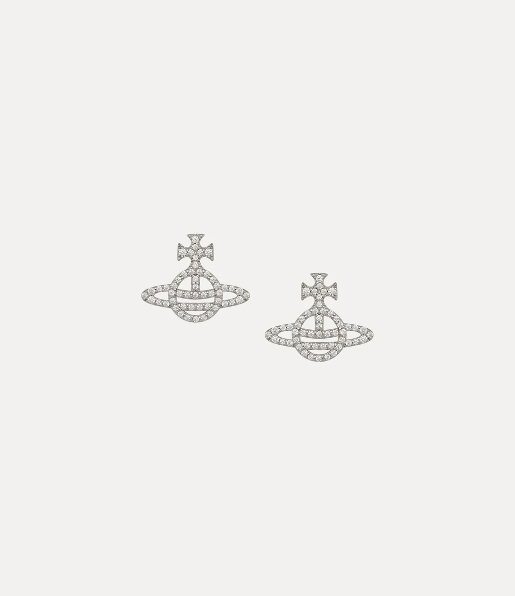 Onze Calliope-oorbellen hebben een platina-vergulde zilveren afwerking en zijn versierd met witte kristallen details rond de omtrek van het ontwerp. Het sieraad is voorzien van de kenmerkende vlindersluitingen en ons ‘Line Orb’-motief, dat synoniem staat voor Vivienne Westwoods visie om traditie naar de toekomst te brengen.
