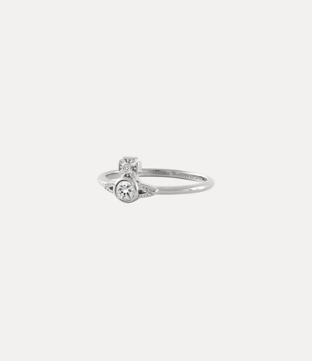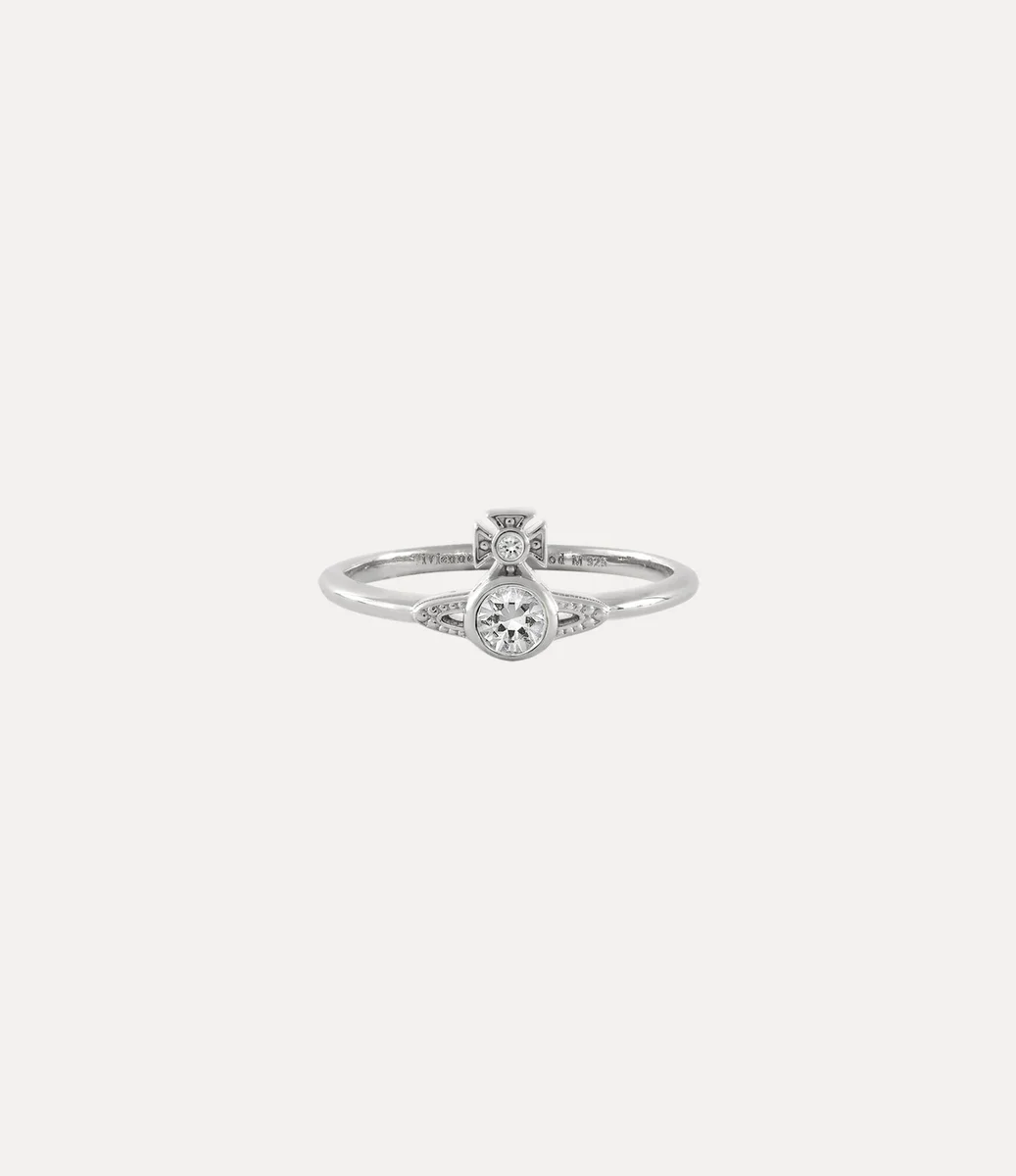 Onze London Orb-ring van gerecycled zilver heeft een delicate band die samenkomt in het bolvormige middenstuk, wat verwijst naar Vivienne’s visie om traditie naar de toekomst te brengen. De Saturn-ring is voorzien van gedetailleerde details en afgewerkt met witte kristallen versieringen.