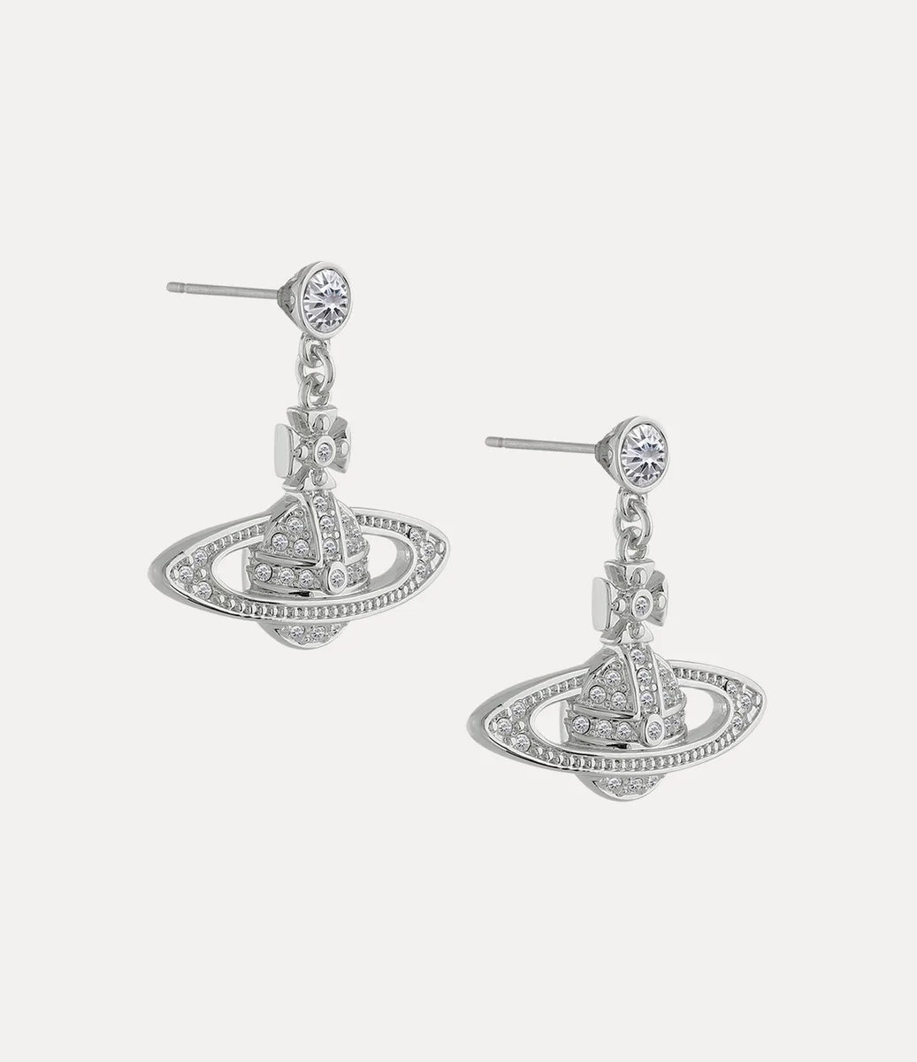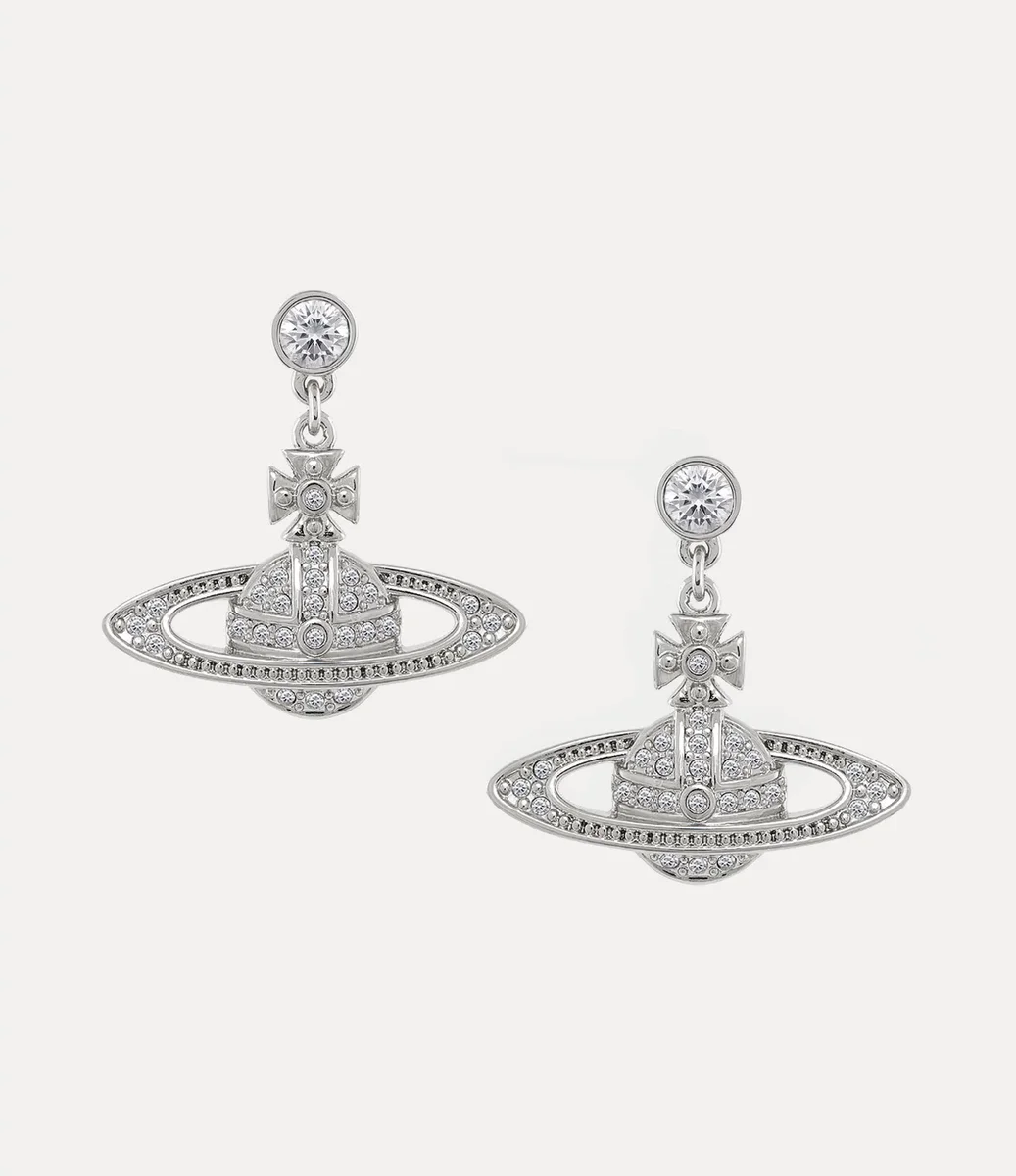 Het bolvormige silhouet is al lang synoniem met het huis en herinnert aan Vivienne’s visie om traditie naar de toekomst te brengen. De Mini Bas Relief Drop oorbellen hebben een bolvormig silhouet, afgewerkt met een gepolijste zilverkleurige laag en ton-sur-ton kristallen details.