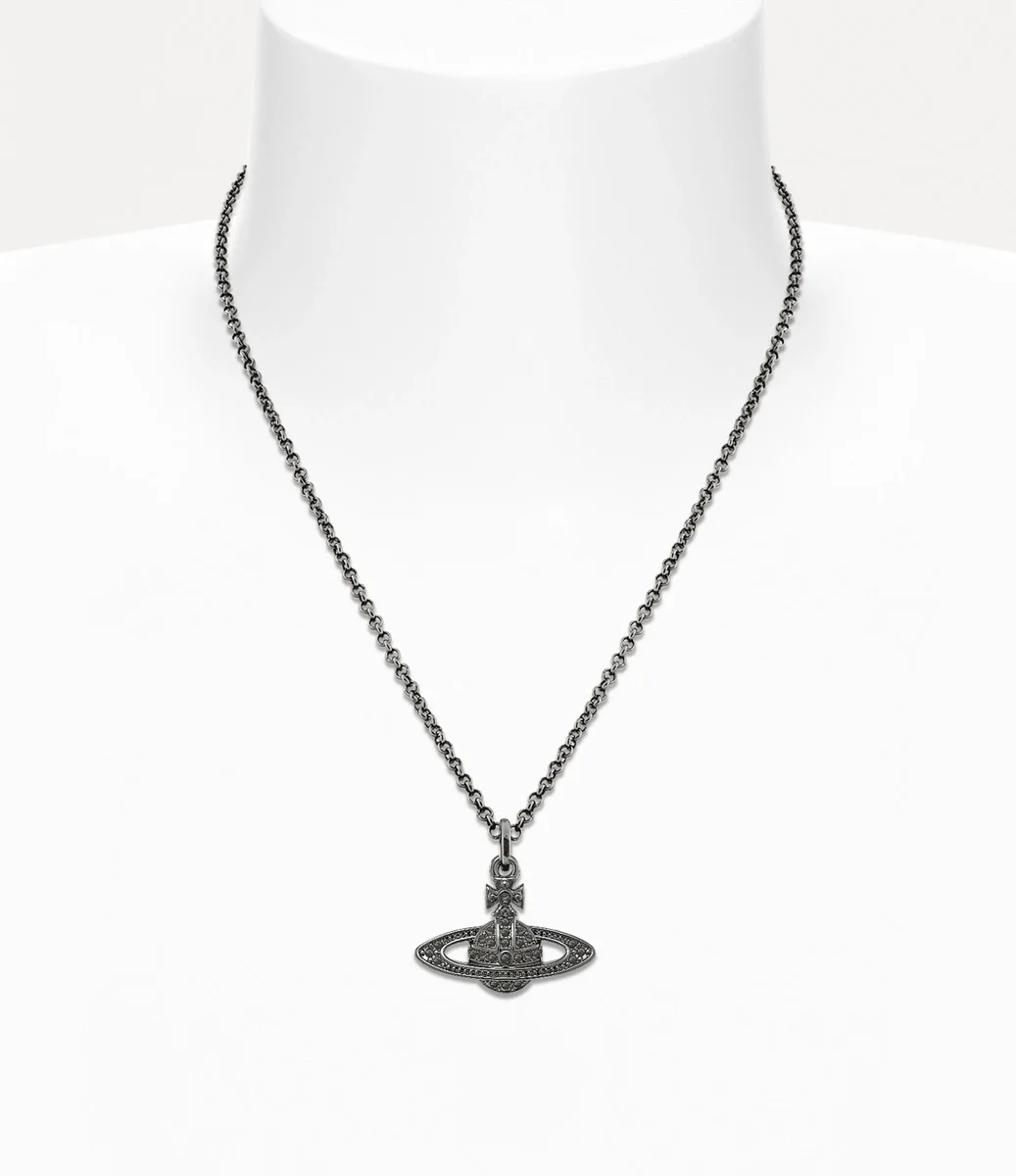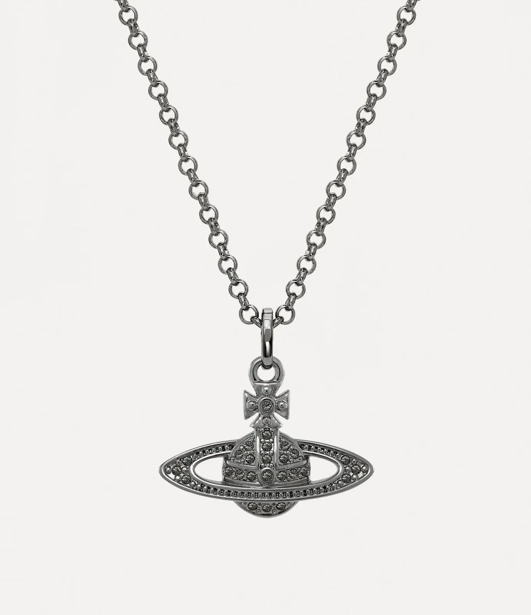 De bol is een essentieel element van de iconografie van het huis en roept Vivienne’s visie op om traditie naar de toekomst te brengen. Onze Mini Bas Relief Pendant ketting heeft een met kristallen ingelegde bol in het midden van het ontwerp, compleet met een gegraveerd label aan de klassieke karabijnsluiting.