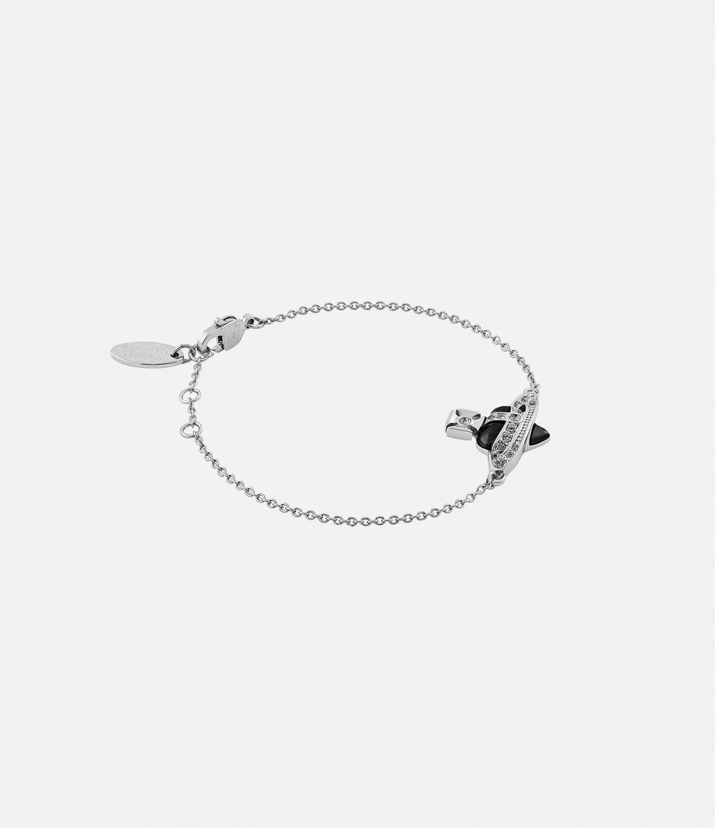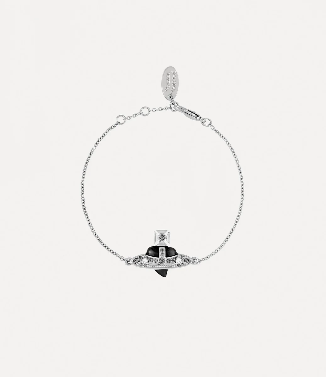 Onze nieuwe Diamante Heart-armband heeft een asymmetrisch hartmotief, dat verwijst naar Vivienne’s liefde voor de mensheid en de planeet. Het ontwerp is gegoten in zilverkleurige plating en heeft een met de hand beschilderd zwart emaille hart, dat is voorzien van gedetailleerde, sprankelende kristallen versieringen.