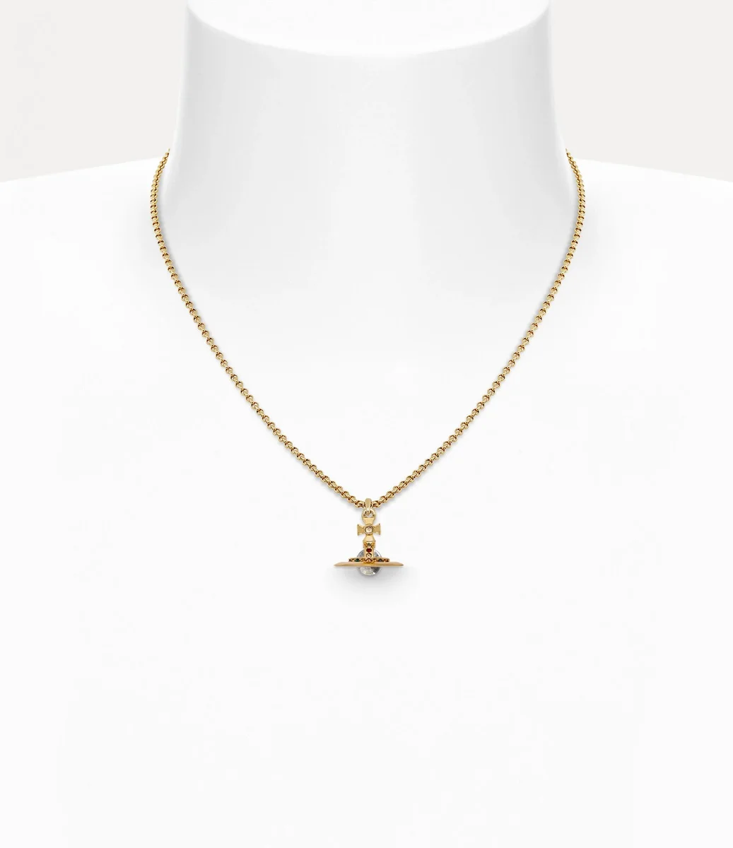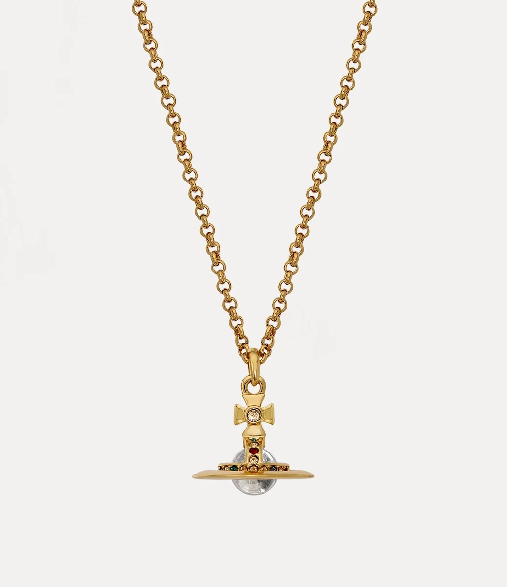 Onze nieuwe Petite Orb-hanger is dit seizoen vernieuwd met een goudkleurige coating. Het ontwerp is bezet met glinsterende gekleurde kristallen details en bevat onze kenmerkende driedimensionale bol in het midden van de ketting, wat symbool staat voor Vivienne’s visie om traditie naar de toekomst te brengen.