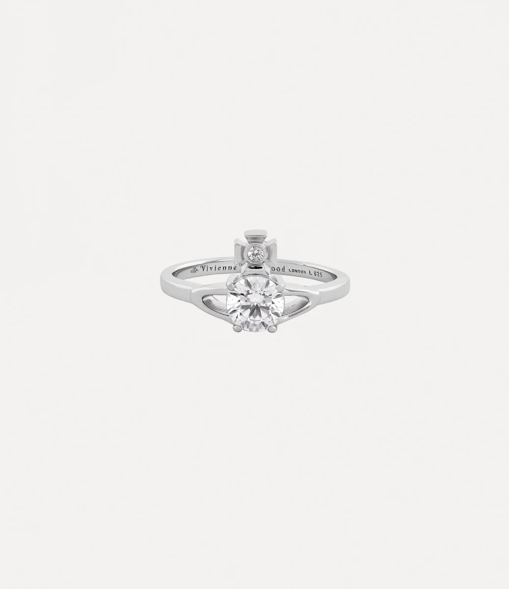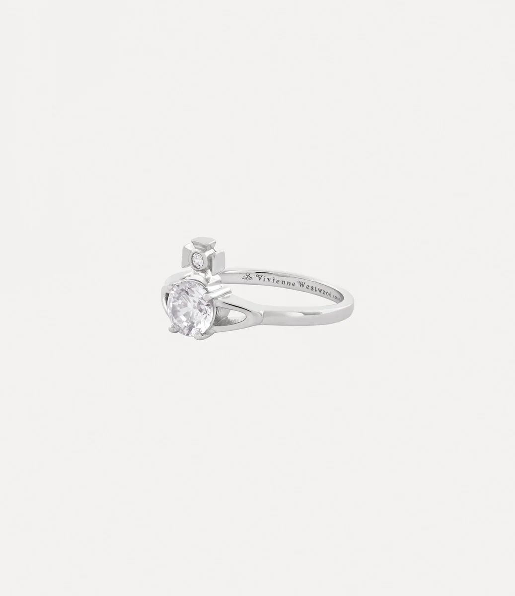 Onze Reina Petite-ring van gerecycled zilver heeft een orb-motief aan de voorkant, geïnspireerd op het kenmerkende orb-embleem van het huis – synoniem voor Vivienne’s visie om traditie mee te nemen naar de toekomst. De delicate band is gegraveerd met een orb en het klassieke ‘Vivienne Westwood’-lettermotief aan de binnenkant.