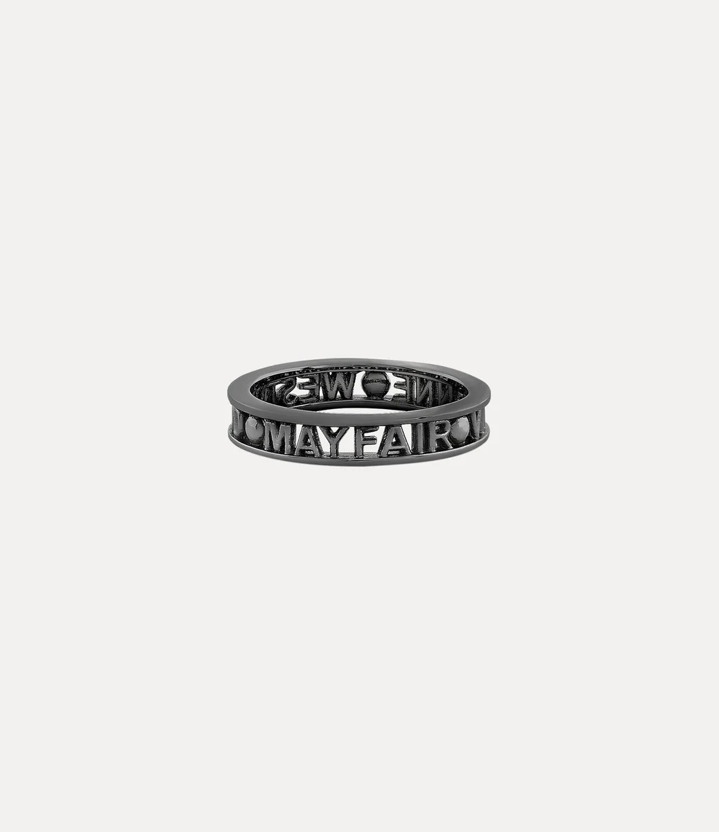 De Westminster-ring is vernoemd naar de gewaardeerde wijk Westminster in Londen, die bekend staat om zijn rijke geschiedenis en culturele belang. Het sieraad heeft een silhouet van gerecycled zilver, versierd met een gunmetal-kleurige afwerking die het slanke logo op de band elegant omringt.