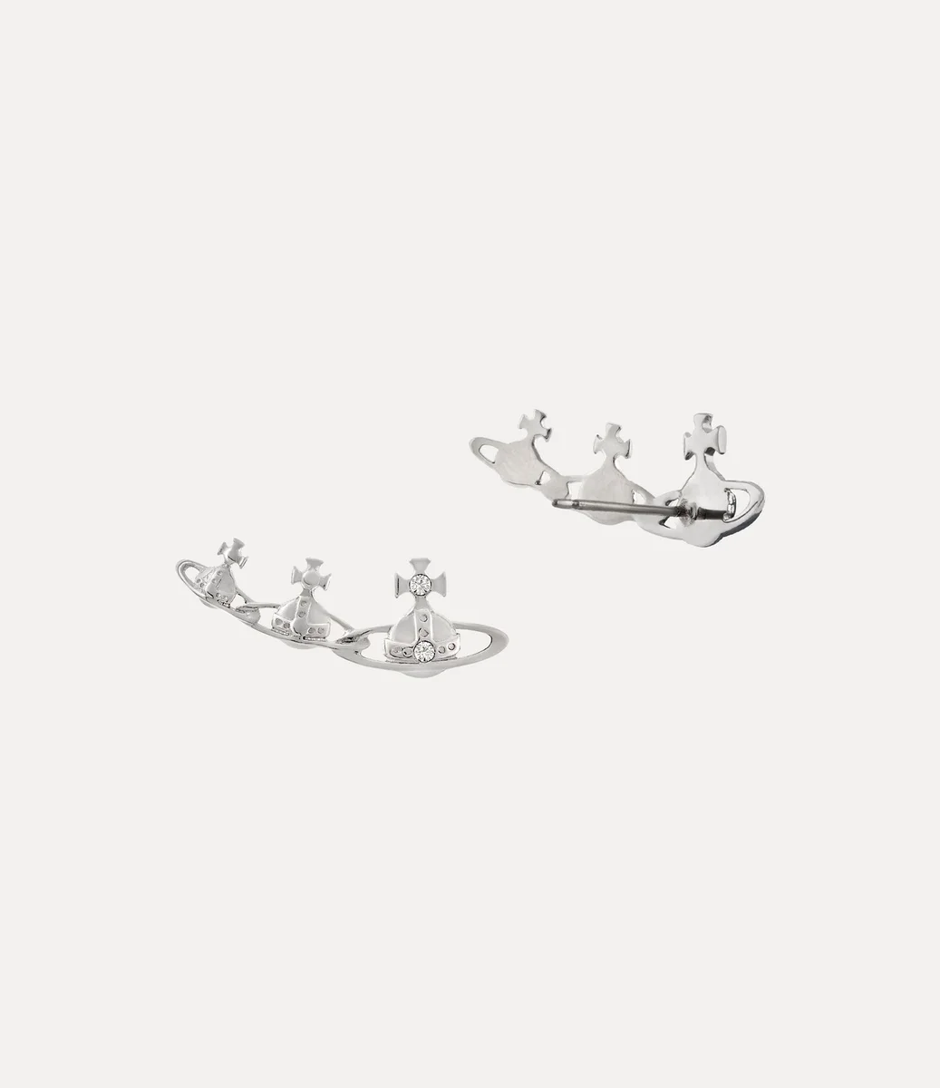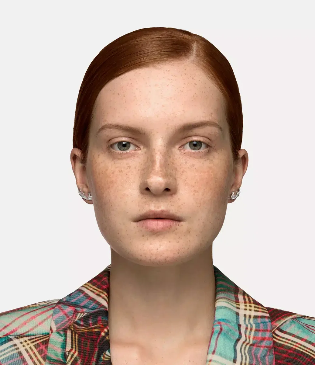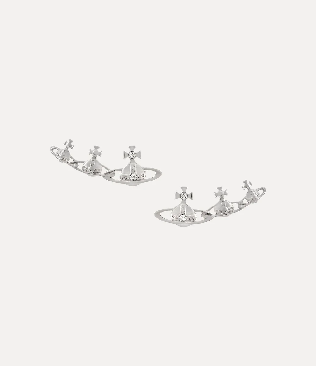 Onze Candy-oorbellen, vervaardigd in zilverkleurige plating, zijn geïnspireerd op het kenmerkende orb-motief van het huis. Het ontwerp bestaat uit onderling verbonden orbs, die symbool staan voor traditie, omringd door hemelse ringen die doen denken aan Saturnus en die de toekomst vertegenwoordigen.