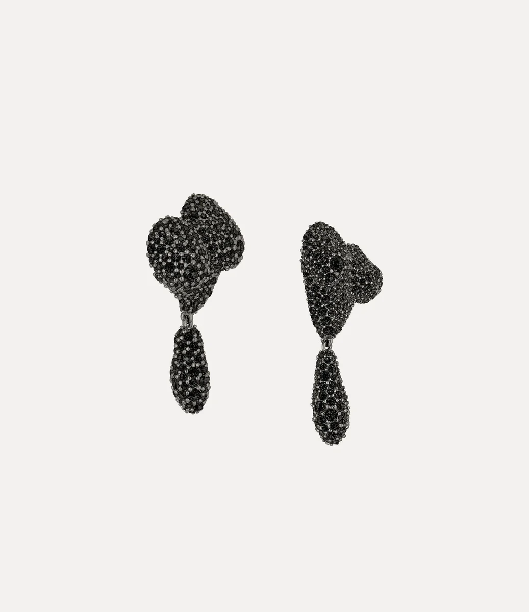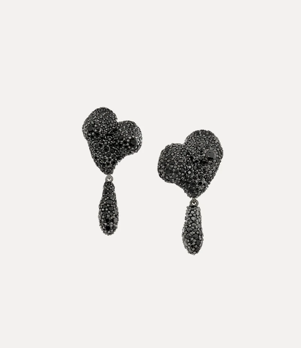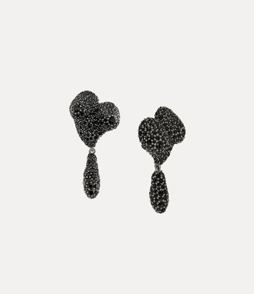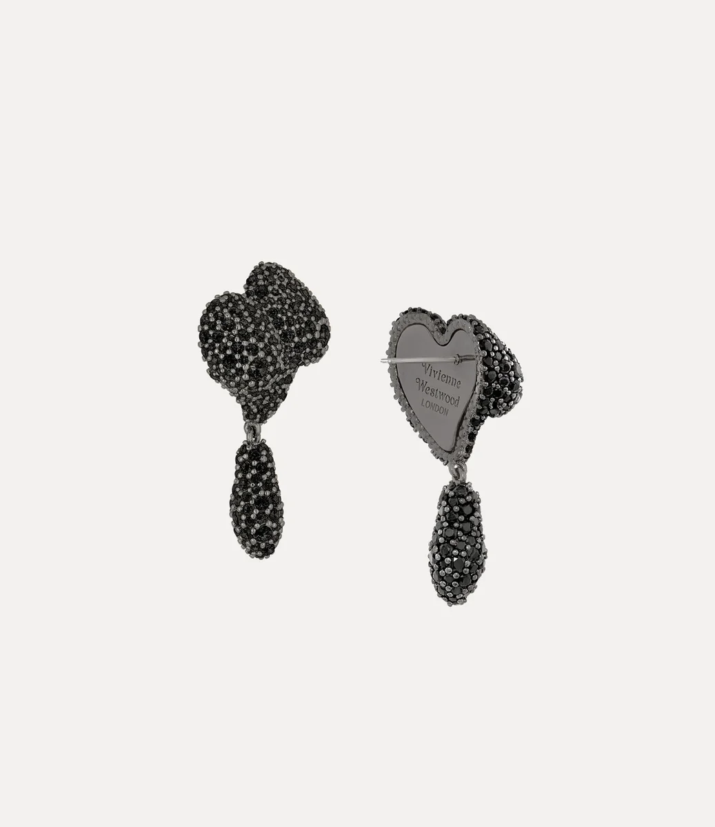 Onze Mimosa Pave-oorbellen doen het klassieke asymmetrische hartvormige motief van het huis herleven en herinneren aan Vivienne’s liefde voor de mensheid en de planeet. Het sieraad is bezet met zwarte kristallen details en subtiel vormgegeven met een taps toelopende punt en een hangende druppel.