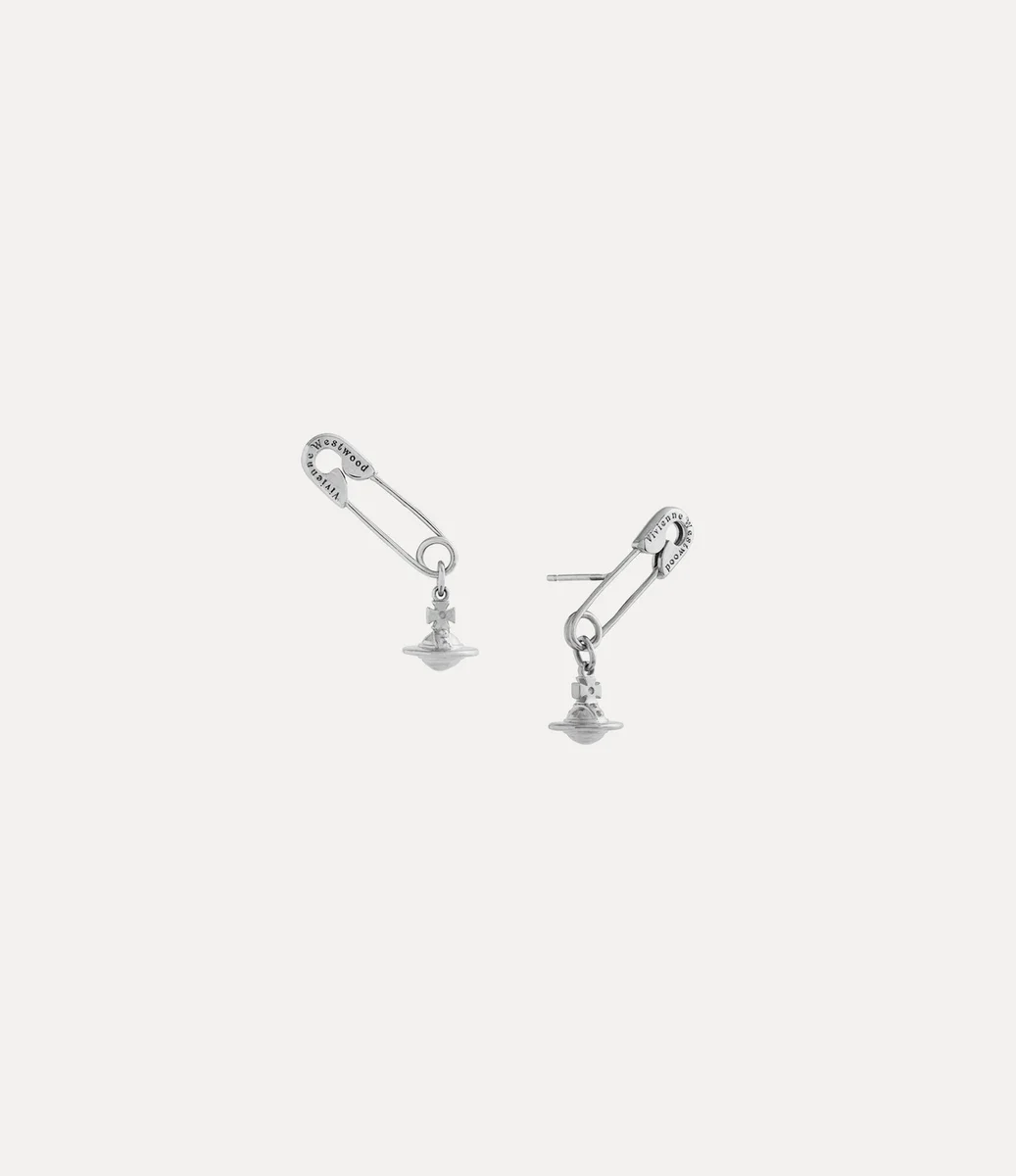 Het veiligheidsspeldmotief is een essentieel onderdeel van de iconografie van het huis en roept Viviennes kenmerkende punkesthetiek op. Het silhouet van de Safety Pin-oorbellen van dit seizoen blaast het motief nieuw leven in, compleet met een klassieke hangende bol als finishing touch – synoniem voor Viviennes visie om traditie naar de toekomst te brengen.