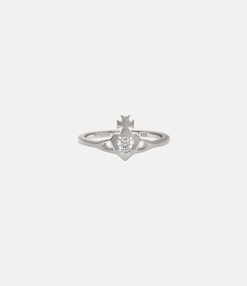 De hartvorm blijft een klassiek element van de iconografie van het huis en herinnert aan Vivienne’s liefde voor de mensheid en de planeet. Onze Noella-ring laat het motief herleven, compleet met gepolijste, platina-kleurige plating en witte kristallen versieringen.
