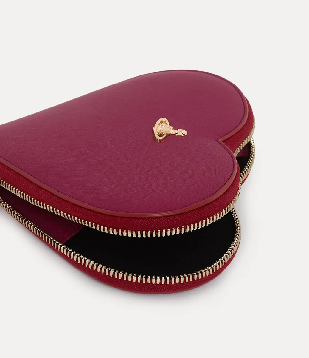 De New Heart Crossbody-tas heeft een hartvormig silhouet, dat verwijst naar Vivienne’s liefde voor zowel de mensheid als de planeet. Het ontwerp is voorzien van een lichtgoudkleurig orb-motief op het voorpaneel, dat symbool staat voor traditie, omringd door de hemelse ringen van Saturnus, die de toekomst vertegenwoordigen.