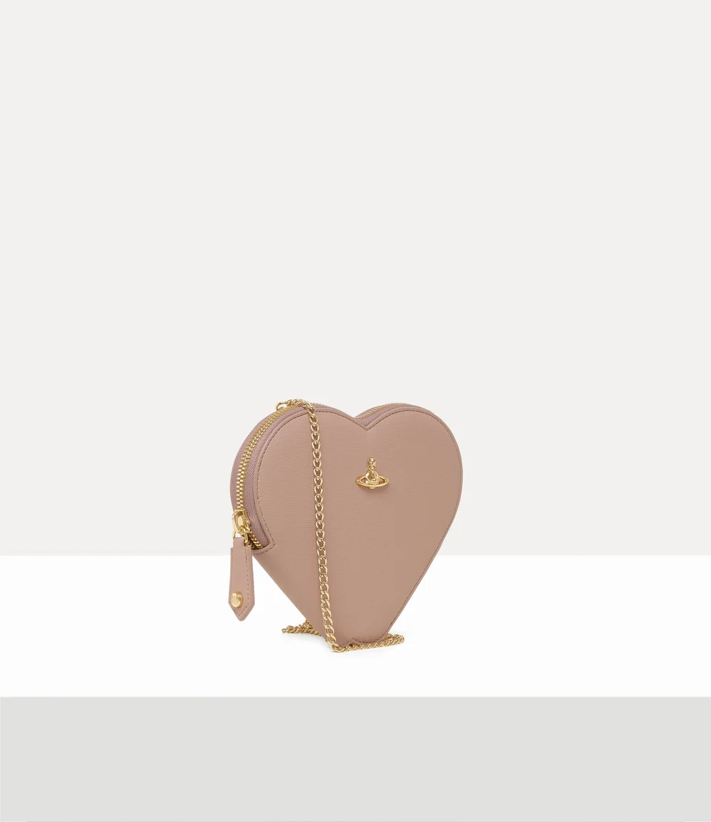De New Heart Crossbody-tas heeft een hartvormig silhouet, dat verwijst naar Vivienne’s liefde voor zowel de mensheid als de planeet. Het ontwerp is voorzien van een lichtgoudkleurig orb-motief op het voorpaneel, dat symbool staat voor traditie, omringd door de hemelse ringen van Saturnus, die de toekomst vertegenwoordigen.
