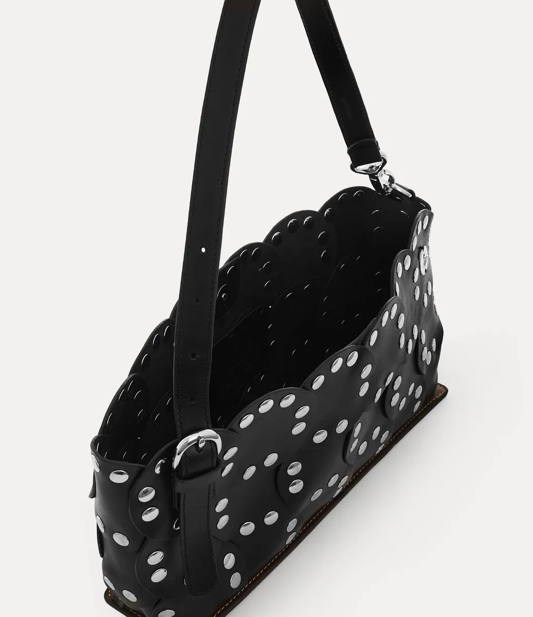 De Liz Concho Handbag, gemaakt in samenwerking met het Ethical Fashion Initiative voor onze Made in Kenya-collectie, is voorzien van met de hand gesneden leren cirkels die aan elkaar zijn bevestigd om de look van een oud harnas op te roepen. De tas is afgewerkt met een hangende bolvormige bedel en een verstelbare riem met een rolgesp.