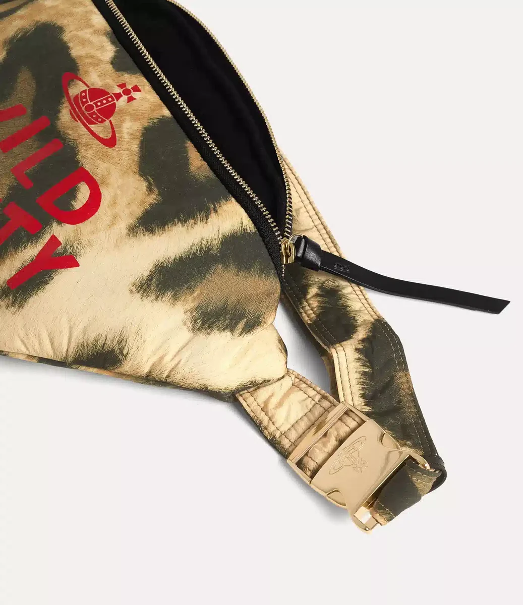 Onze Ada body bag heeft een halvemaanvormig nylon profiel en is bedrukt met een opvallend luipaardmotief dat verwijst naar onze Gold Label-collectie ‘Wild Beauty’ uit het najaar/winter van 2001. Op de voorkant is het orb-embleem afgebeeld boven de slogan ‘Wild Beauty’ in levendig rood, terwijl een veilige ritssluiting aan de bovenkant en een verstelbare riem het ontwerp compleet maken.
