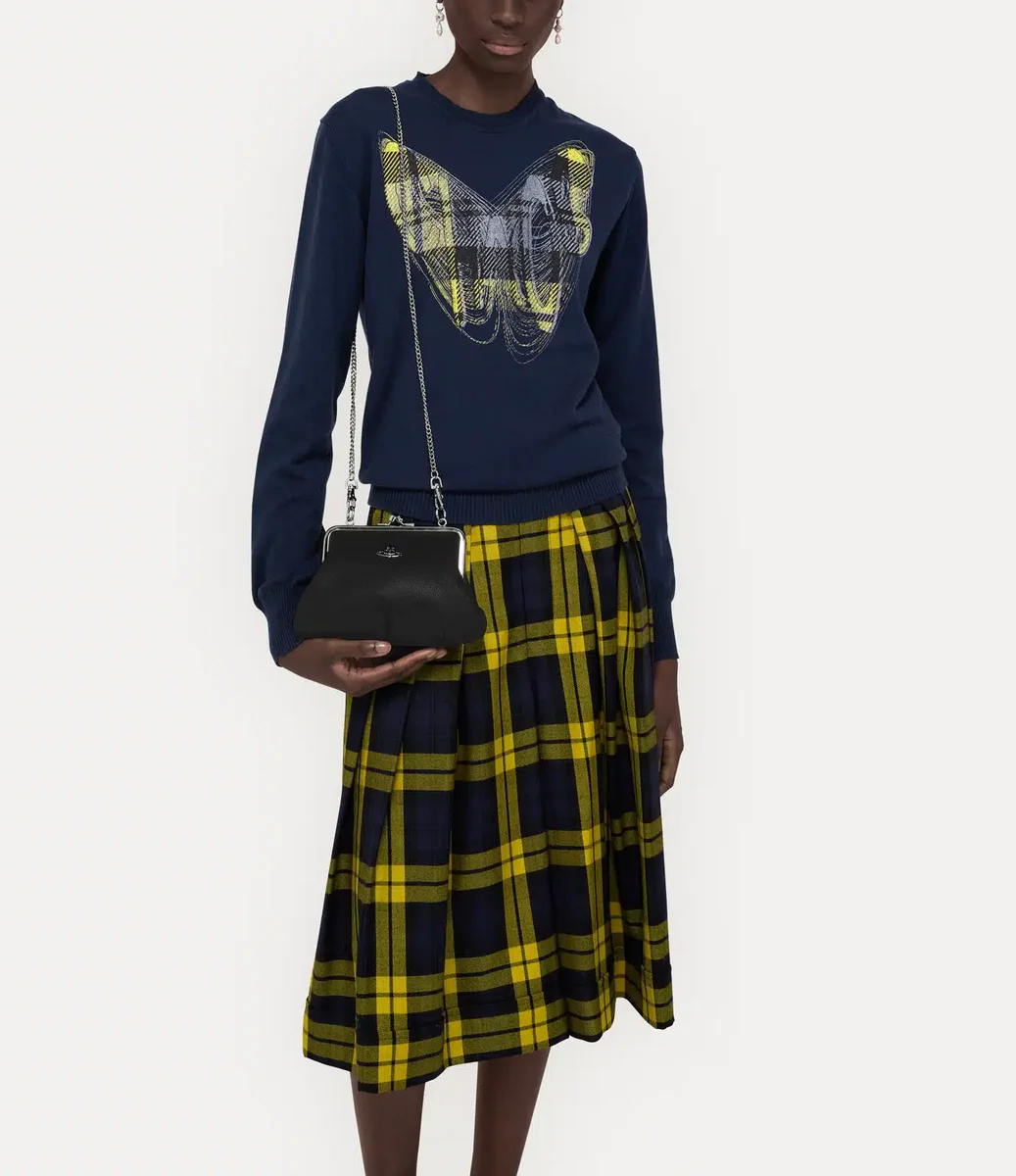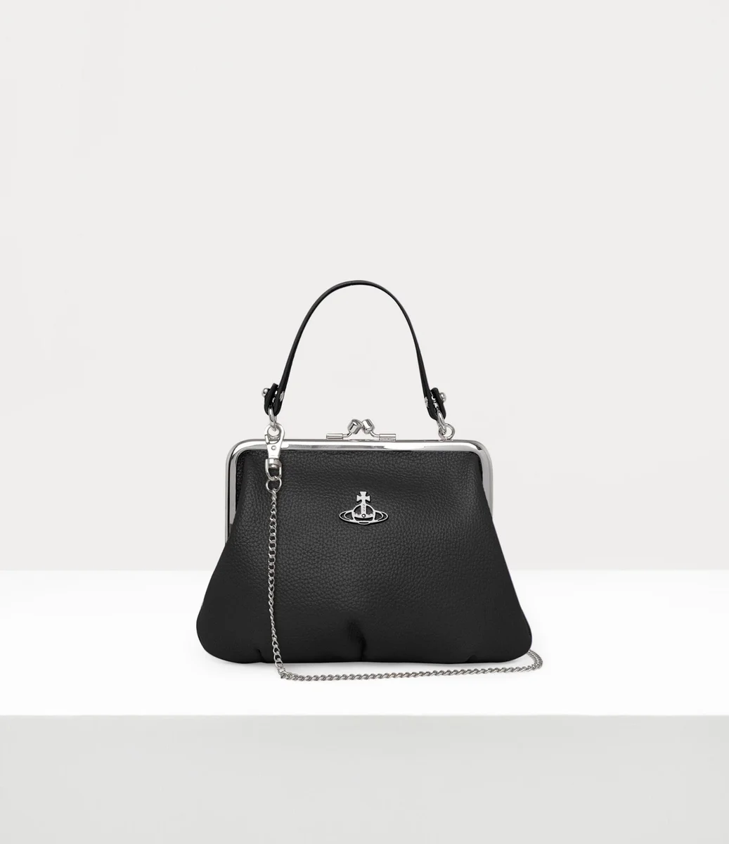 Onze Granny Frame-portemonnee heeft een vintage-geïnspireerd silhouet en een kiss-lock sluiting, die doet denken aan antieke portemonnees uit het begin van de 20e eeuw. Het item heeft een zachte PU-leren afwerking, compleet met ons klassieke ‘Line orb’-motief, dat symbool staat voor traditie, omringd door de hemelse ringen van Saturnus, die symbool staan voor de toekomst.