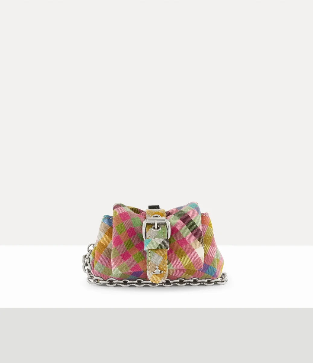 Onze Hazel Treasure Charm handtas is een nieuwe versie van het kenmerkende ‘Hazel Treasure’-ontwerp van het huis, met het levendige wollen ‘Heather Check’-motief van dit seizoen. Het item is gemaakt met een sculpturale riem die om het zacht gestructureerde silhouet is gewikkeld en is afgewerkt met ons bas-reliëf orb-embleem aan de voorkant.