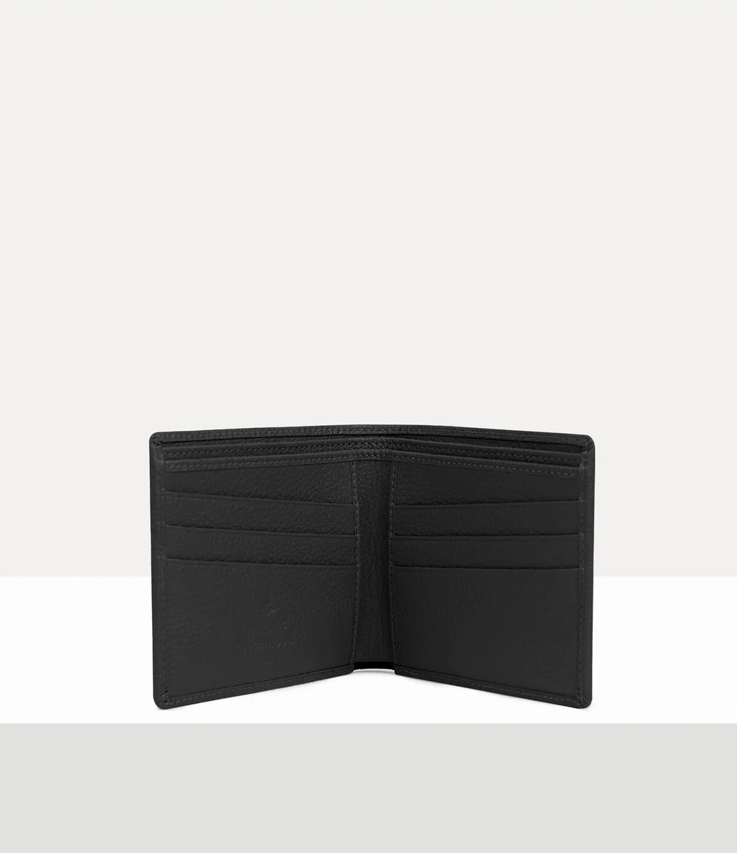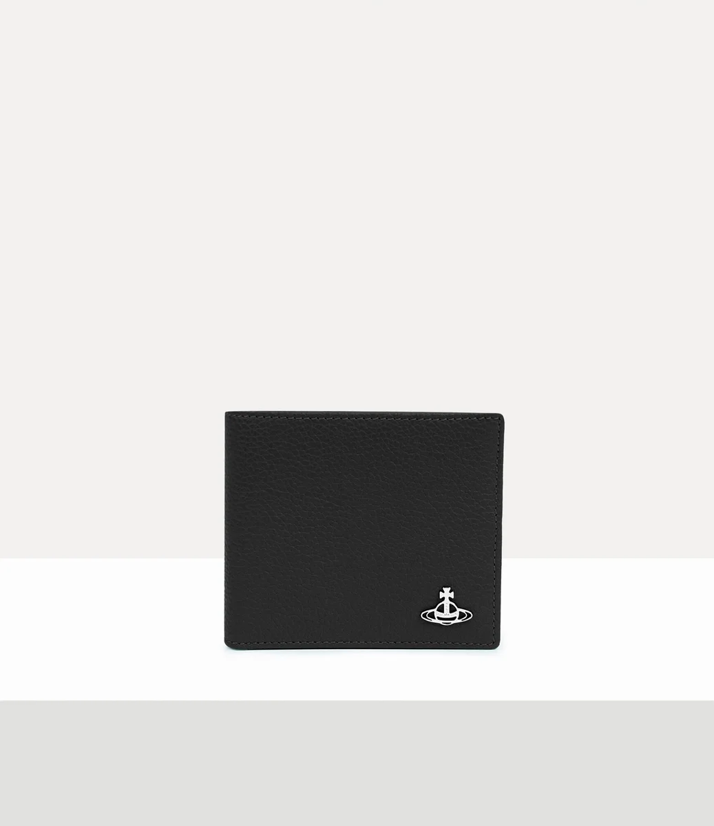 Onze Man. Billfold portemonnee van PU-leer heeft een reliëfstructuur met de tekst ‘Vivienne Westwood’ op het binnenpaneel. De plaat aan de voorkant van het ontwerp is geïnspireerd op het orb-embleem van ons huis, waarin de ring van Saturnus is verwerkt om aan te geven dat traditie wordt meegenomen naar de toekomst.