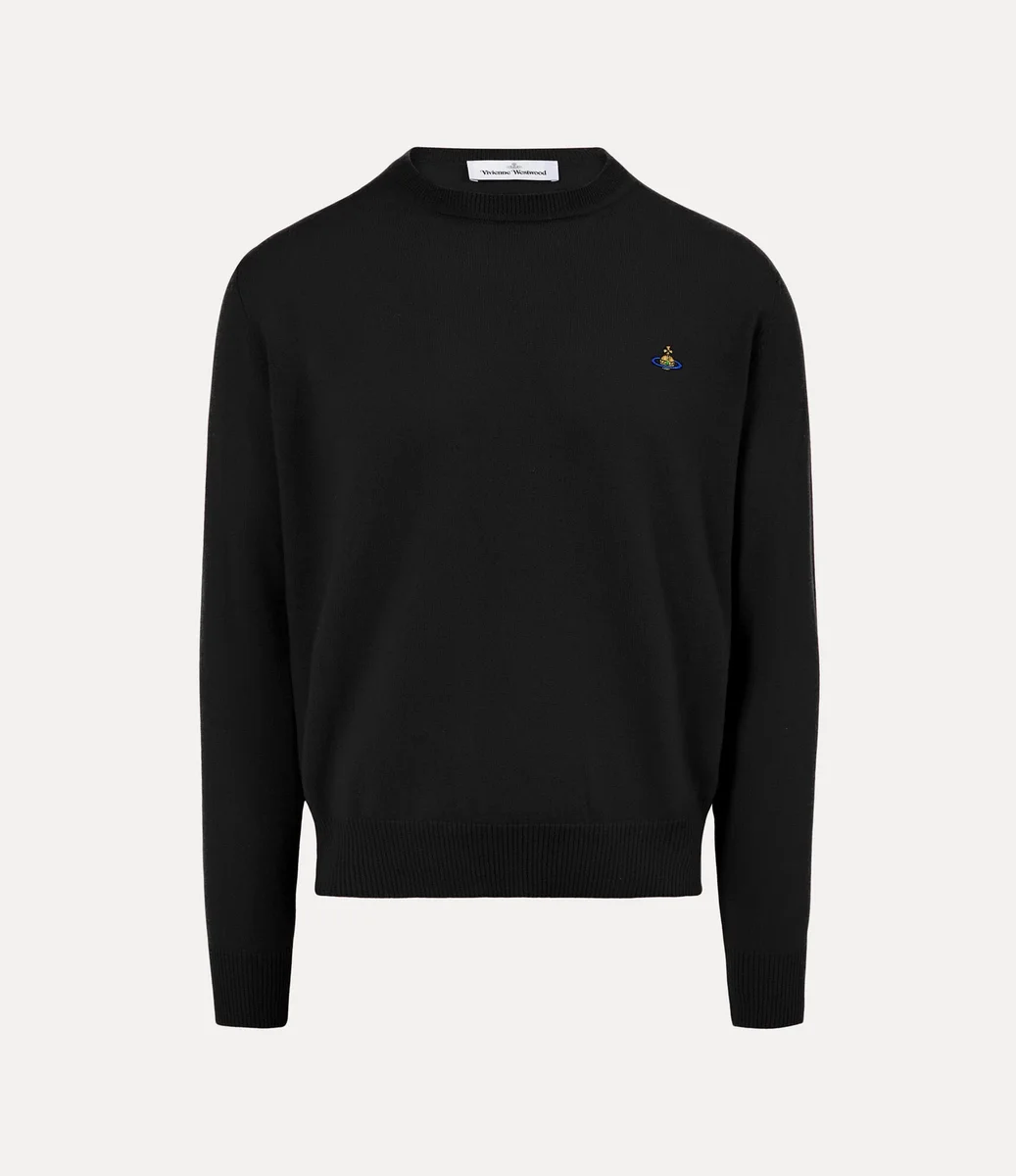 De Alex Round Neck-trui is een kenmerkend stuk van het huis, dit seizoen vervaardigd uit een luxe wol-kasjmiermix. Het kledingstuk is ontworpen met een klassieke ronde halslijn en versierd met ons klassieke veelkleurige orb-motief op de borst, waarmee Vivienne’s visie om traditie naar de toekomst te brengen wordt belichaamd.