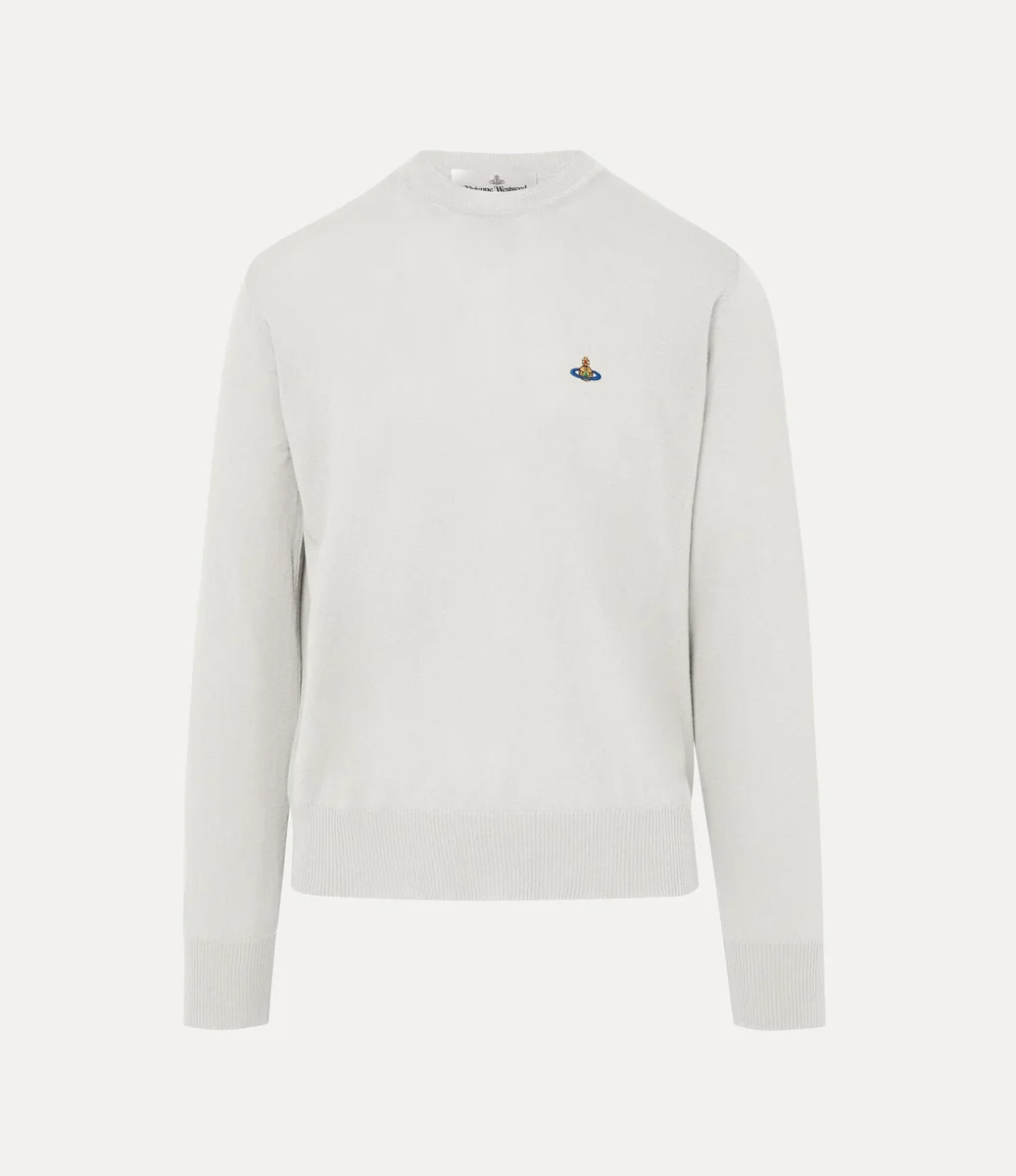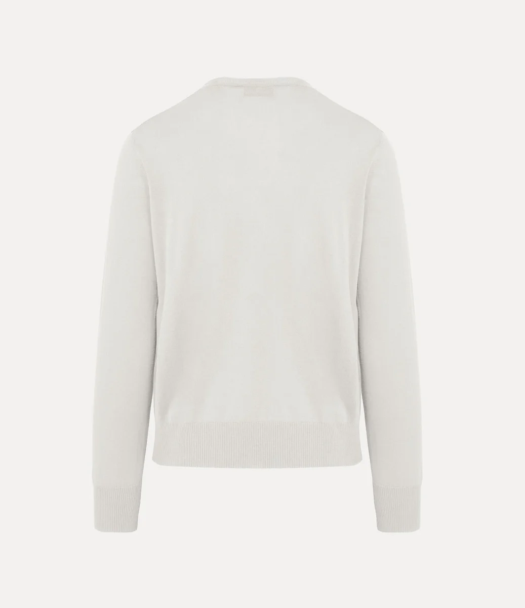 Onze Alex-trui met ronde hals is gemaakt van zachte wol en heeft een geribbelde ronde halslijn die overgaat in een rechte zoom, compleet met lange mouwen met manchetten. Het kledingstuk is versierd met het geborduurde orb-motief van het huis op de linkerkant van de borst en weerspiegelt Vivienne’s visie om traditie naar de toekomst te brengen.