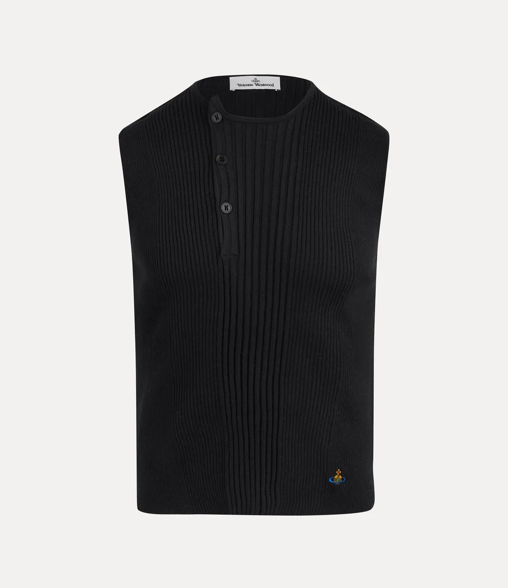 Ons Tegan-vest is gemaakt van een lichtgewicht katoen-kasjmiermix en heeft een gebogen zoom en ronde halslijn, afgewerkt met een kwartknoopsluiting. Het model heeft verticale ribbels op het middenpaneel, waardoor het bovenlichaam langer lijkt.